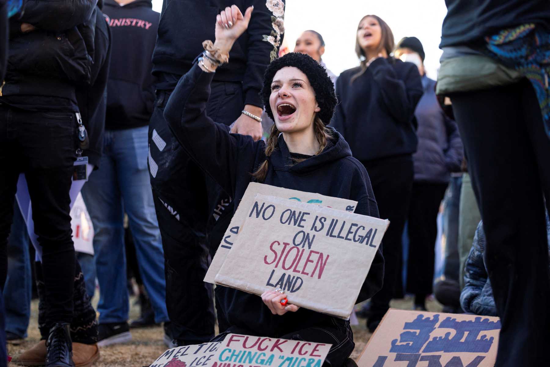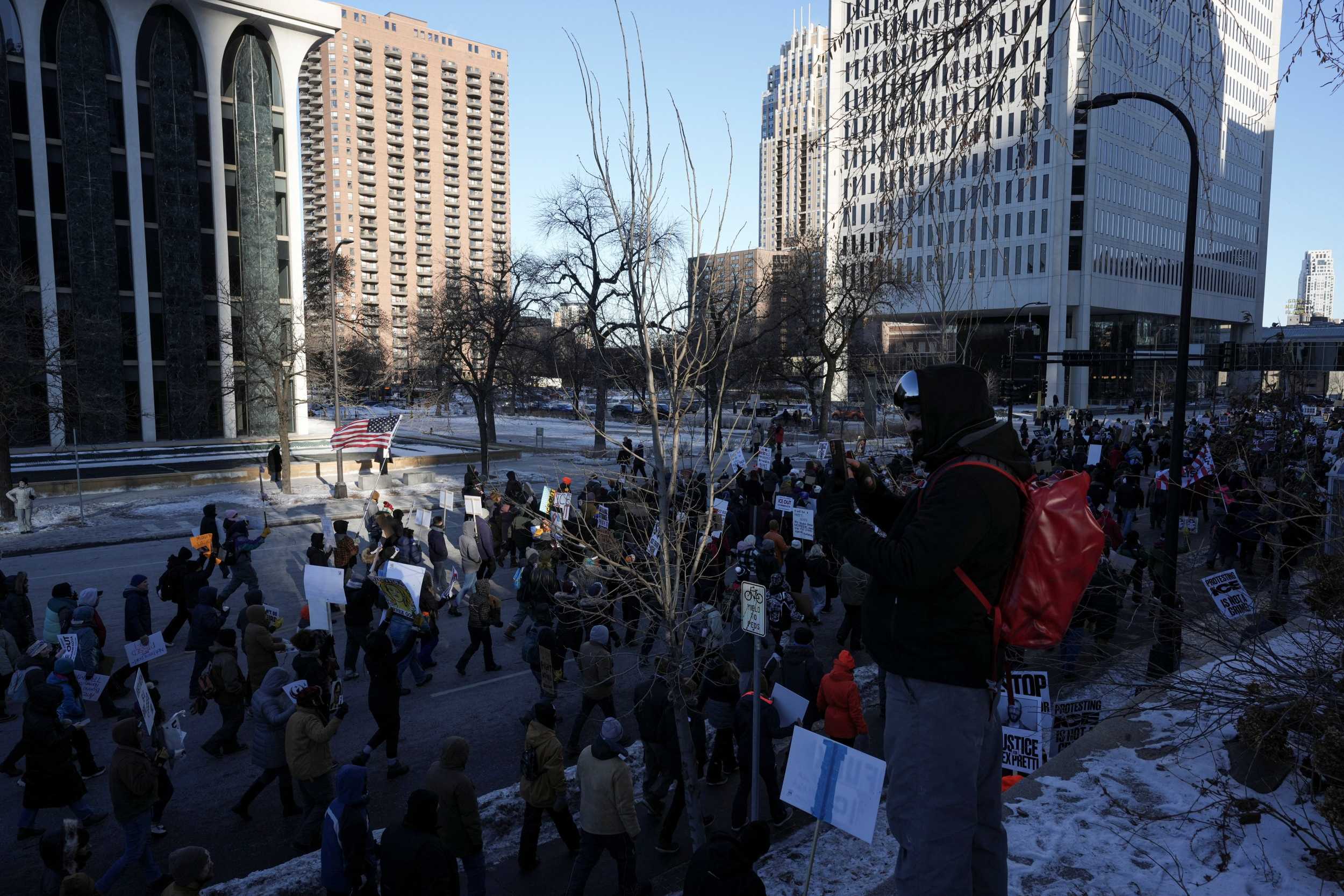 U okviru nastojanja da se obračuna s imigrantima, predsjednik Donald Trump poslao je 3000 saveznih policajaca u područje Minneapolisa da patroliraju ulicama, što je pet puta veća snaga od policijske uprave Minneapolisa. Prosvjedujući protiv rasta broja policajaca, ali i grubih taktika koje koriste američka imigracijska i carinska služba, nekoliko tisuća ljudi okupilo se u petak u središtu Minneapolisa na temperaturi ispod nule, uključujući obitelji s malom djecom, starije parove i mlade aktiviste zajednice.