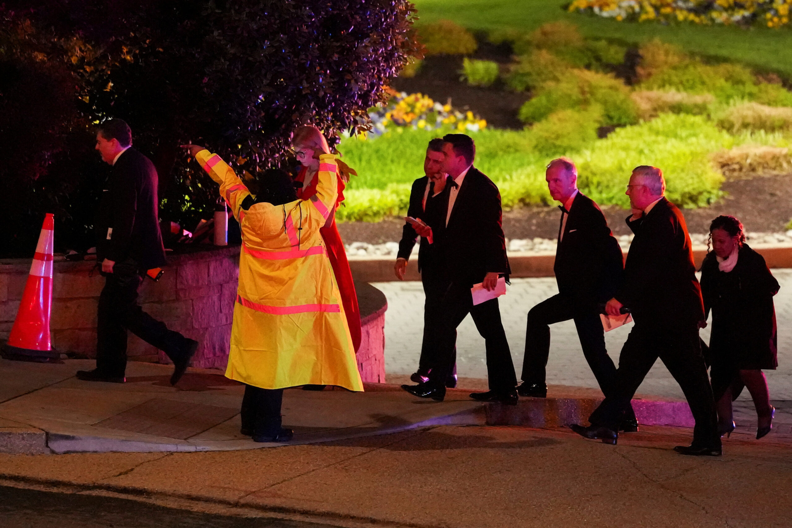 Pripadnici zaštite 79-godišnjeg milijardera i teško naoružano osiguranje  skočili su na pozornicu na kojoj je bio glavni stol okružili i izveli predsjednika iz dvorane, zajedno sa suprugom Melanijom i ostalim visokim dužnosnicima: potpredsjednikom J. D. Vanceom, tajnicom za tisak Bijele kuće Karoline Leavitt i nekoliko članova kabineta.