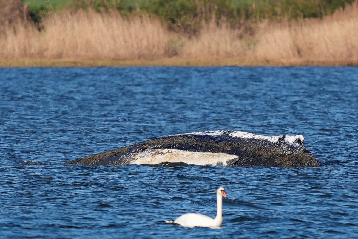 Nasukani grbavi kit, čija sudbina već više od mjesec dana snažno zaokuplja Njemačku, ostao je u subotu ležati u plitkim vodama kod otoka Poel u blizini Wismara na obali Baltičkog mora.