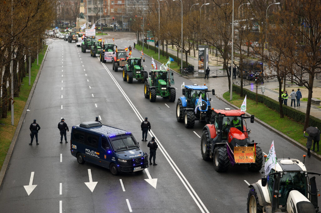 Poljoprivrednici pristigli iz nekoliko pokrajina prošli su centrom Madrida i zaustavili se ispred ministarstva poljoprivrede, ribarstva i hrane gdje su pročitali svoje zahtjeve.