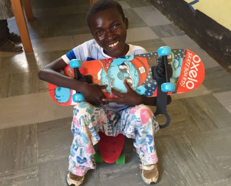 Trinaestogodišnji Jeremiah u Mali dom stigao je prije 4 godine, s navršenih 9 godina. Do tada je cijeli život proveo u kokošinjcu, gdje su ga roditelji ostavili jer mu naprosto nisu znali pomoći. Njegove su noge gotovo bez mišića, atrofirale ispod koljena i Jeremiah nije mogao hodati, nije imao čak ni kontrolu nad fiziološkim funkcijama, nitko ga tome nije naučio. U domu je dobio invalidska kolica, koja su potpuno promijenila njegov svijet i dotadašnji način života. A onda je, sasvim slučajno u Mali dom stigao i jedan skateboard koji je Jeremiah brzo otkrio i sada ovu igračku koristi kao svoje omiljeno prijevozno sredstvo.