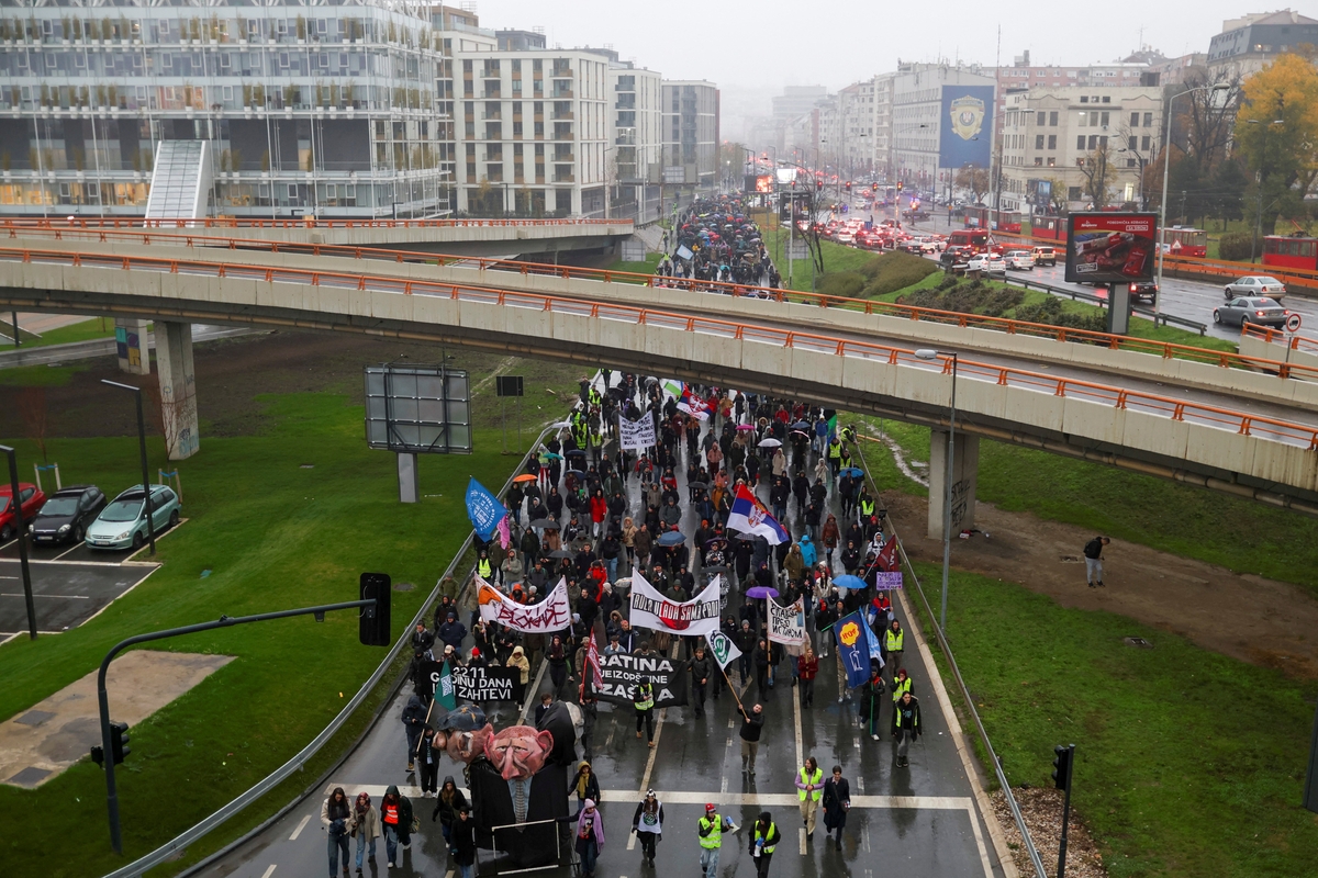 Prosvjednom šetnjom u Beogradu u subotu je obilježena obljetnica početka studentskih blokada fakulteta koji su bili potaknuti nasiljem pristaša vladajuće stranke na komemorativnom skupu kojim je 22. studenog 2024. šutnjom odavana počast stradalima u padu nadstrešnice na novosadskom željezničkom kolodvoru.