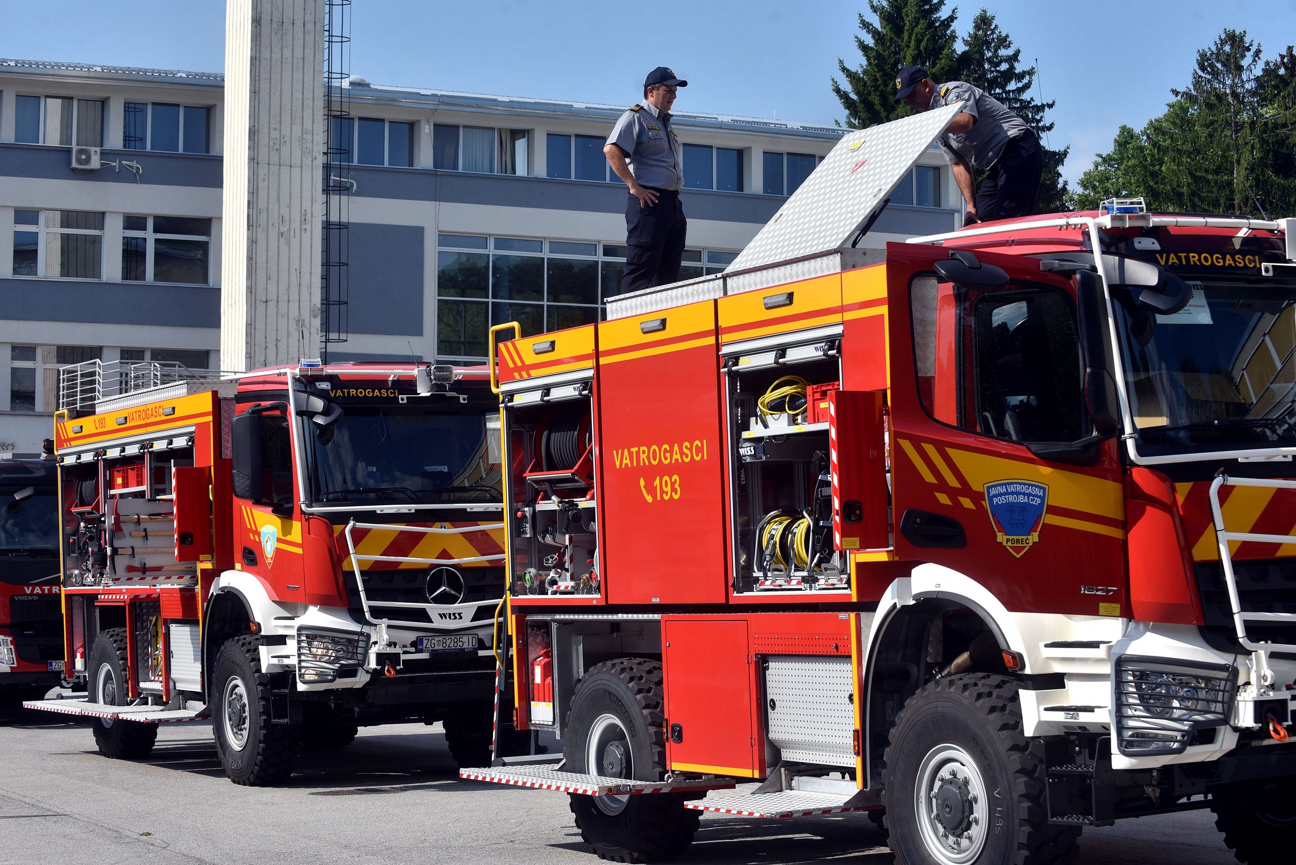 Riječ je projektu "Modernizacija vozila vatrogasnih postrojbi RH", a danas su isporučene četiri autocisterne, sedam šumskih lakih vozila, dva teška šumska vozila te dva kratka navalna vozila