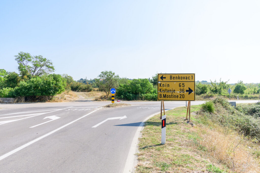 Niti dva kilometra dalje, na mjestu gdje se iz Benkovačke bojne izlazi na Ulicu kralja Dmitra Zvonimira, putokaz kaže da je Knin sada bliži za 20, a Kistanje za devet kilometara.