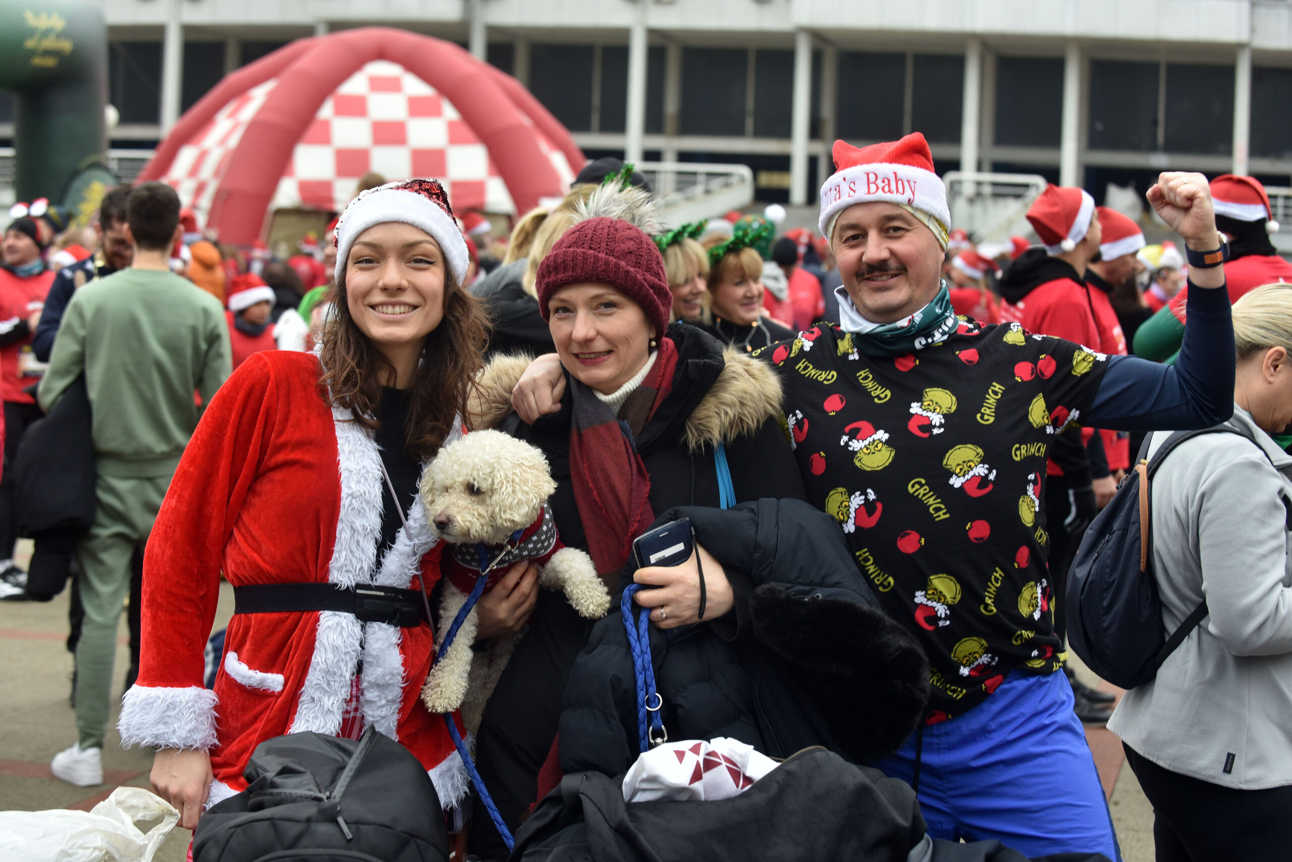 Trg Krešimira Ćosića preplavile su božićne kapice, rogovi, pokoji Grinch i nezaobilazna Baka Mraz. Utrku su trčali i psi u božićnim džemperima, a zagrijavanje je pratio glazbeni program DJ-a Vedrana Cara.