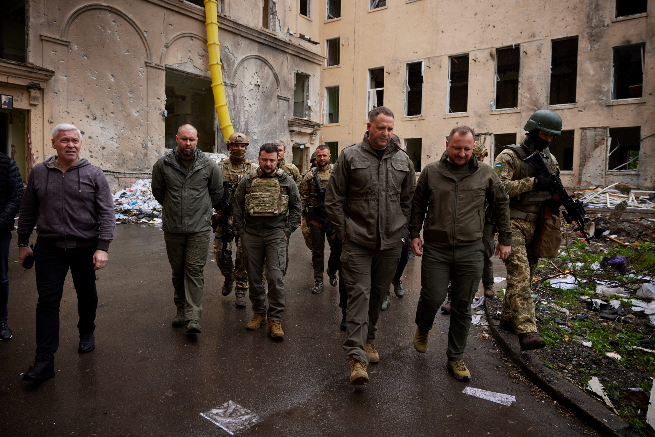 Za vrijeme podnošenja izvješća vojnog vodstva o operativnoj situaciji na bojišnici, Zelenskij je s guvernerom Olehom Siniehubovim razgovarao o šteti nanesenoj civilnim objektima u regiji.