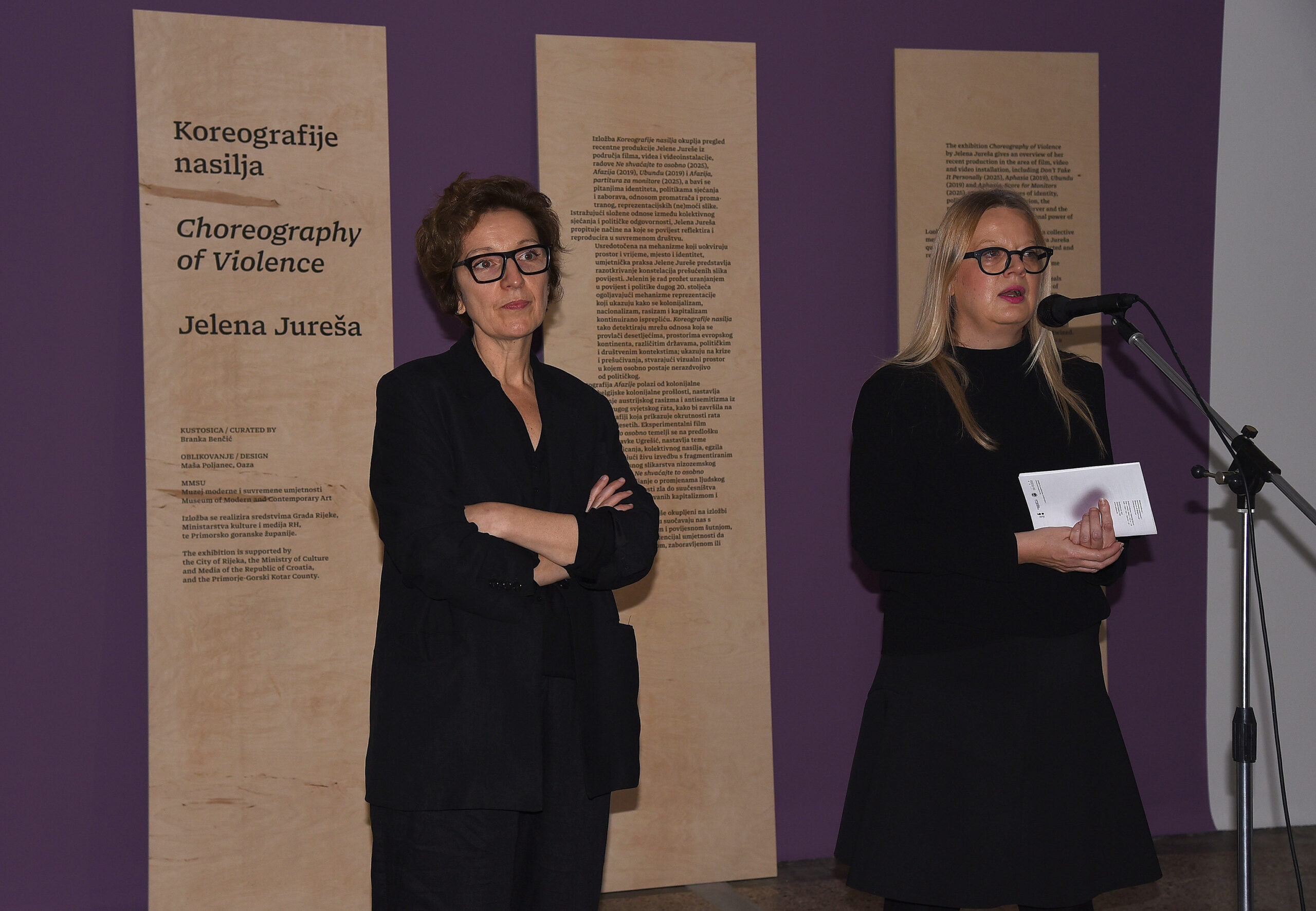 RIJEKA – U Muzeju moderne i suvremene umjetnosti otvorena je izložba “Koreografije nasilja”, prva velika samostalna izložba Jelene Jureše u Hrvatskoj, koja okuplja pregled njezine recentne produkcije iz područja filma, videa i videoinstalacije.