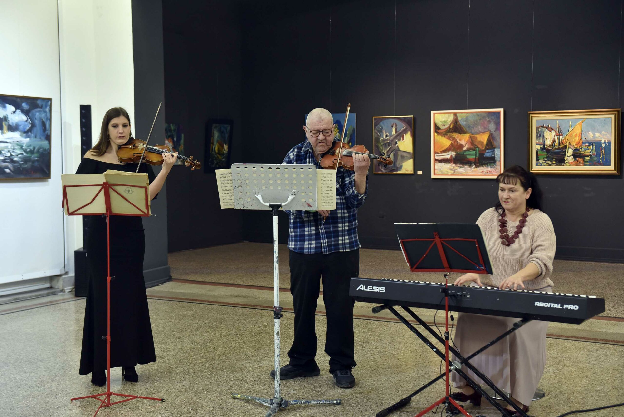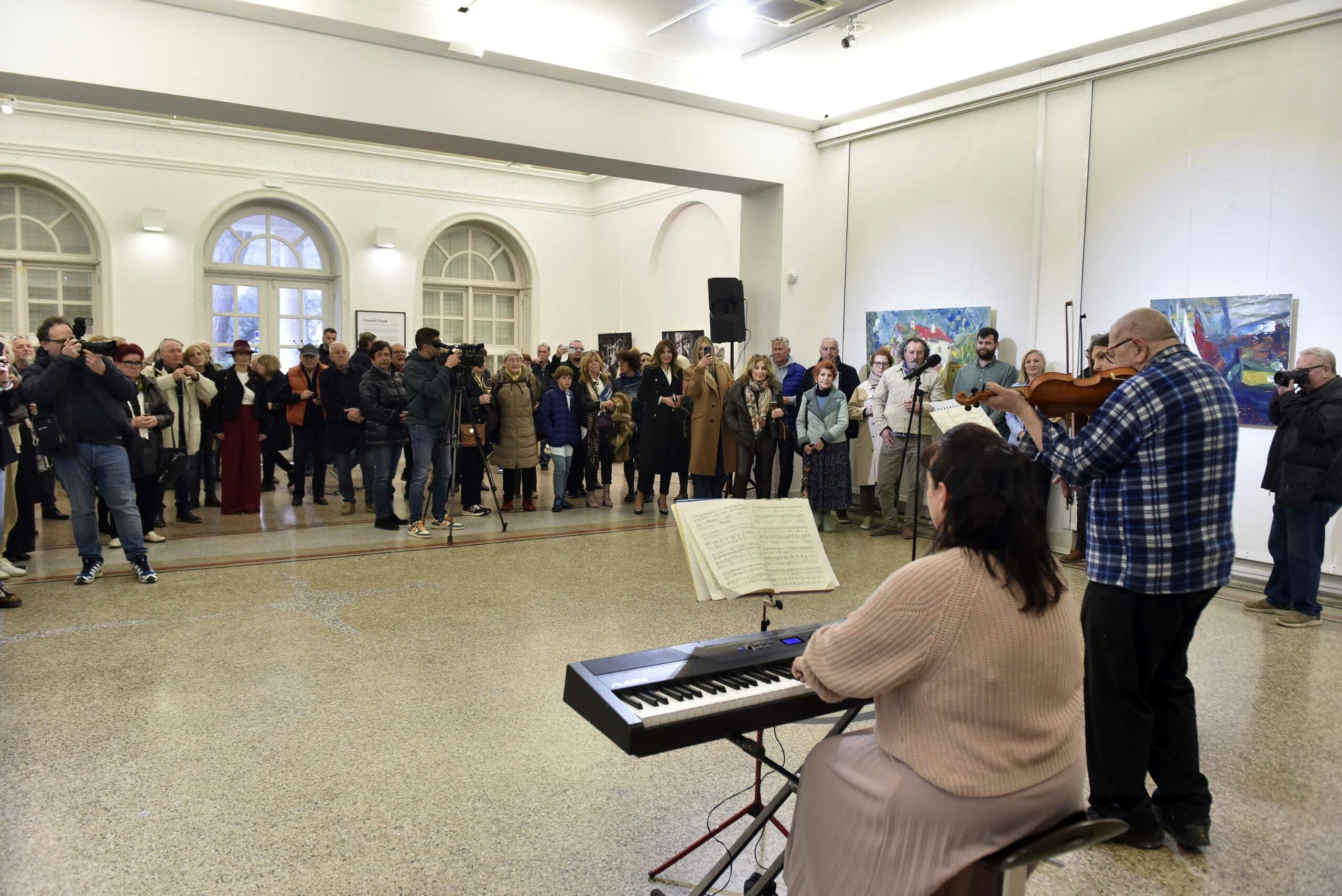 Kustos izložbe i urednik kataloga je Ervin Dubrović, a izložba je otvorena uz nastup slikara i violinista Claudija Franka i njegove kćeri, Esperanze Frank, koja je nedavno diplomirala violinu na konzervatoriju u Trstu i u pratnji Natalye Marycheve na klavijaturama.