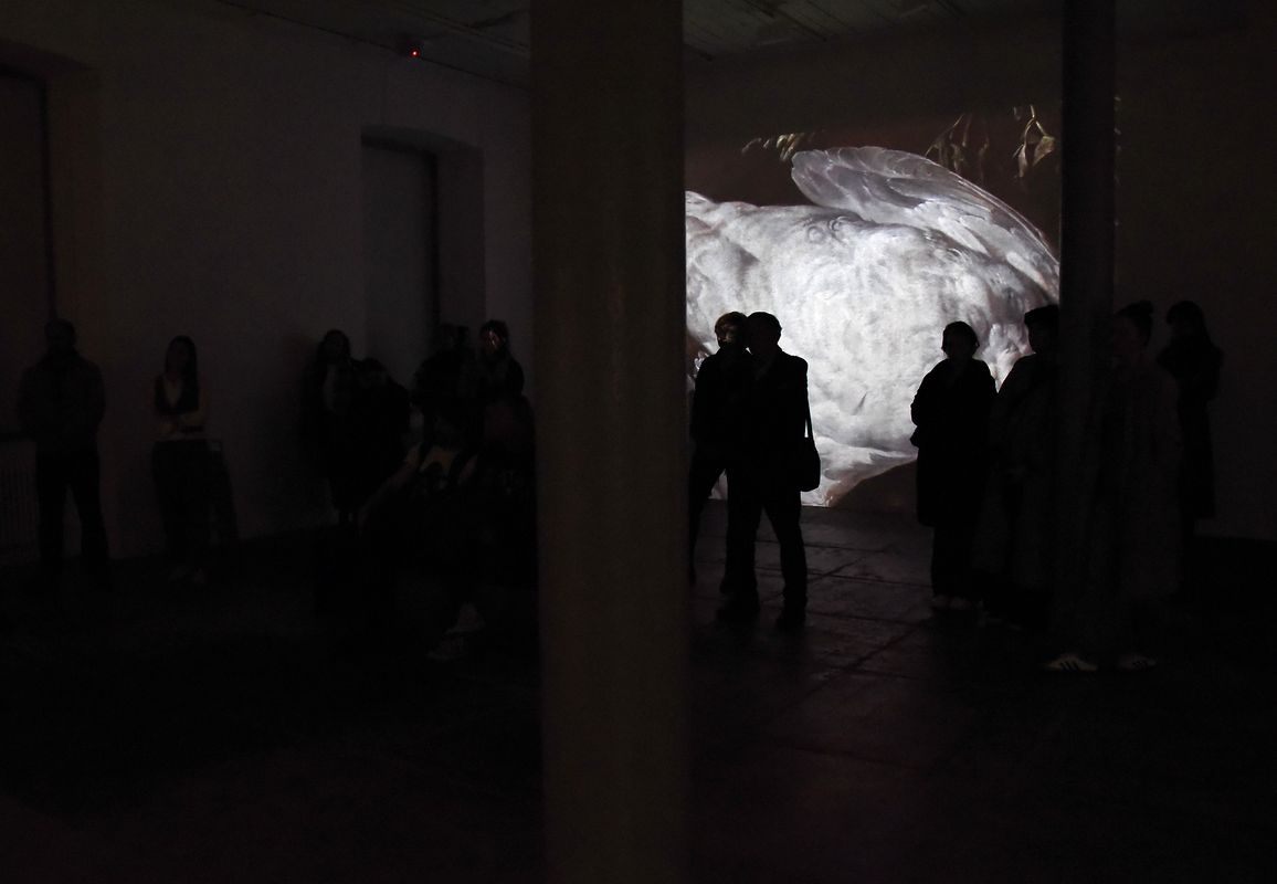 Sama izložba, kaže, okuplja u velikim izložbenim dvoranama izložena četiri rada – “imerzivne audiovizualne instalacije koje stvaraju poetike i politike pokretnih slika između dokumentarnog i izvedbenog”.