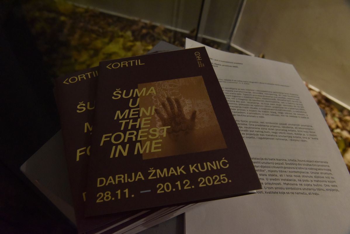 Izložba “Šuma u meni” autorice Darije Žmak Kunić otvorena je u Galeriji Kortil. Izložba predstavlja intimno, introspektivno putovanje umjetnice kroz slojevitu simboliku šume – prostora transformacije, skloništa, nesvjesnog, ali i stvarnog pejzaža kao mjesta povratka sebi, korijenima, sjećanju i tišini.