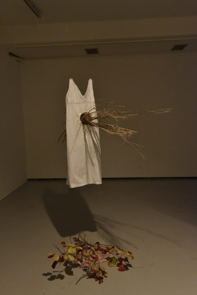 Izložbom u Galeriji Kortil autorica, kako sama napominje, umjetnički »istražuje i otvara prostor susreta« – »između čovjeka i prirode, tijela i duha, tame i svjetla«.