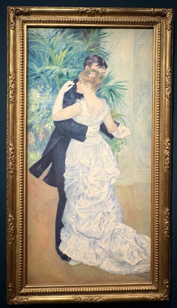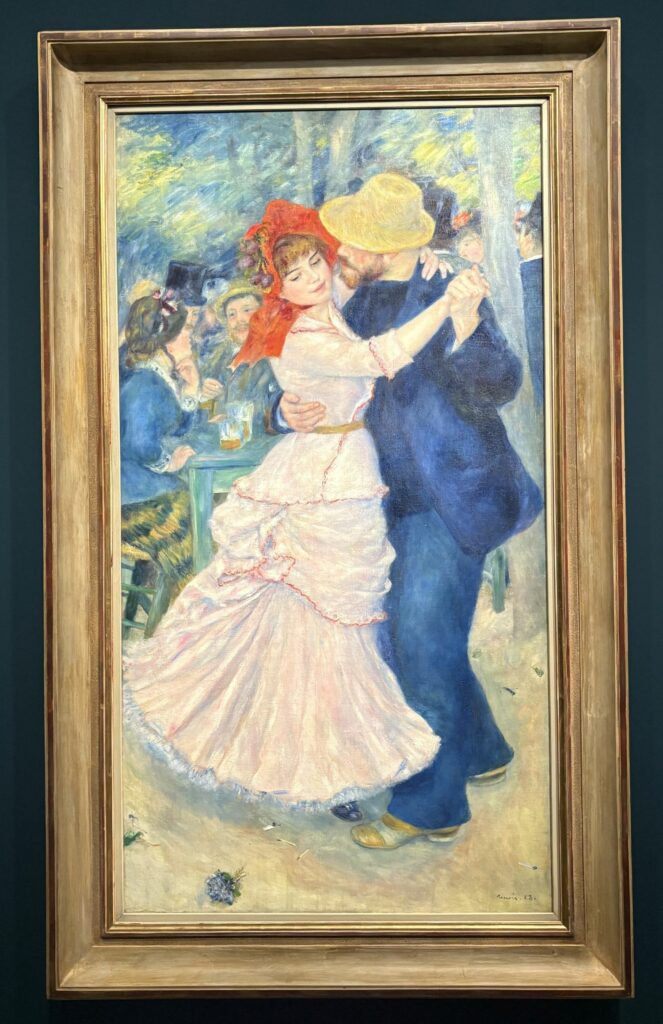 U ritmu svog živahnog poteza kista, Renoir prikazuje slobodnu, modernu ljubav. Njegovi likovi zaboravljaju društvena ograničenja kako bi uživali u trenucima radosti i zajedništva. Ovo je suptilna ljubav, često ona koja se osjeća u prvim trenucima zavođenja sastavljena od osmijeha, znalačkih pogleda, rumenih obraza i zadržanih pokreta, prije nego što se tijela stvarno dodirnu. Poput svjetla, ova impresionistička senzualnost prožima sve u Renoirovu radu stvarajući nježnu magiju u svakom kutku njegovih slika.