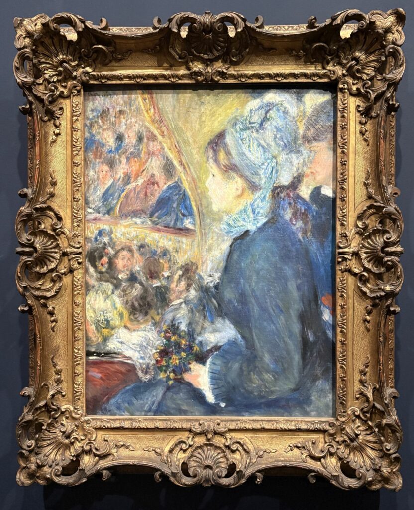 Kazalište je imalo ključnu ulogu u pariškom društvenom životu: ljudi su ondje išli manje zbog gledanja predstava, a više kako bi promatrali društvene interakcije i odjeću ženskih posjetiteljica. Kazališne lože bile su povezane s romantičnim vezama i bile su vrlo čest motiv u popularnom tisku. Prvi put se pojavljuju u impresionističkom slikarstvu 1874. kada je Renoir izložio Kazališnu ložu na prvoj izložbi grupe.
