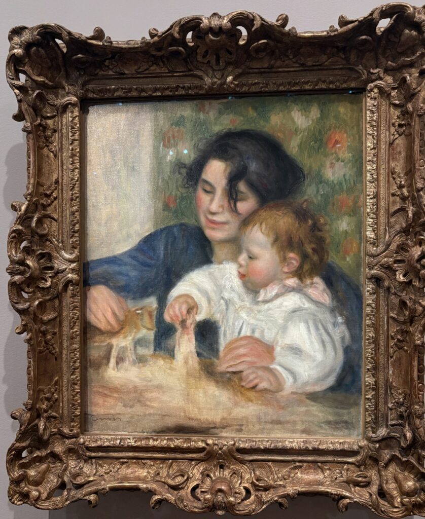 Iako su njegovi prikazi još uvijek obilježeni tradicionalnim rodnim stereotipima, Renoir oživljava duh »galantnih zabava« Watteaua, Bouchera i Fragonarda kako bi ponovno očarao odnose između muškaraca i žena i, neizravno, istražio pitanje muške želje i ženskog pristanka. No Renoir se ne zadržava samo na igrama zavođenja. Njegovi parovi često su dio šire mreže društvenih i emocionalnih odnosa (prijatelji, roditelji, djeca itd.). Odbijajući prihvatiti društveni determinizam i pesimističan pogled koji su neki naturalistički umjetnici primjenjivali na radničku klasu (iz koje je i sam potjecao), Renoir ujedno izbjegava prikaz mračnije stvarnosti – siromaštva, alkoholizma, prostitucije, buržoaske eksploatacije radničkih žena, sudbine samohranih majki i napuštene djece (osim ako na te stvarnosti ne upućuje tek diskretno). Renoir je imao brojne muze i ljubavnice, uključujući Lise Tréhot s kojom je imao dijete koje nije priznao. Njegovi odnosi često su bili složeni i skriveni. Aline je postala njegova supruga i donijela stabilnost u njegov život. Inspirirala je mnoga djela majčinstva.