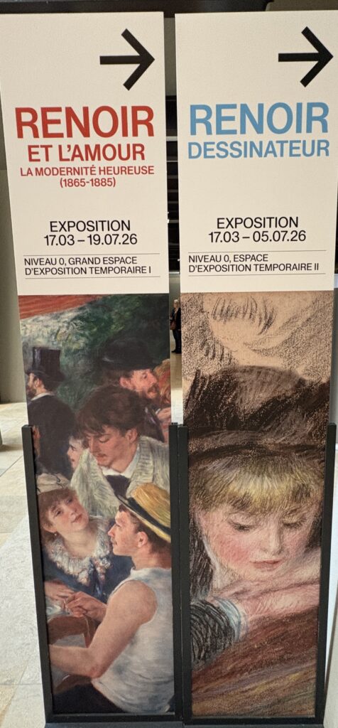 Prvi put od 1985. godine, kada je u Parizu, u Grand Palaisu, održana posljednja velika retrospektiva Renoira, neka od njegovih i impresionističkih najvećih remek-djela ponovo su okupljena u Francuskoj. Ova izložba, organizirana u suradnji s Nacionalnom galerijom u Londonu i Muzejom likovnih umjetnosti u Bostonu, razmatra temeljni doprinos Renoira impresionizmu i umjetnosti 19. stoljeća kroz složeni i univerzalni pojam ljubavi – središnju pokretačku snagu njegova stvaralaštva.