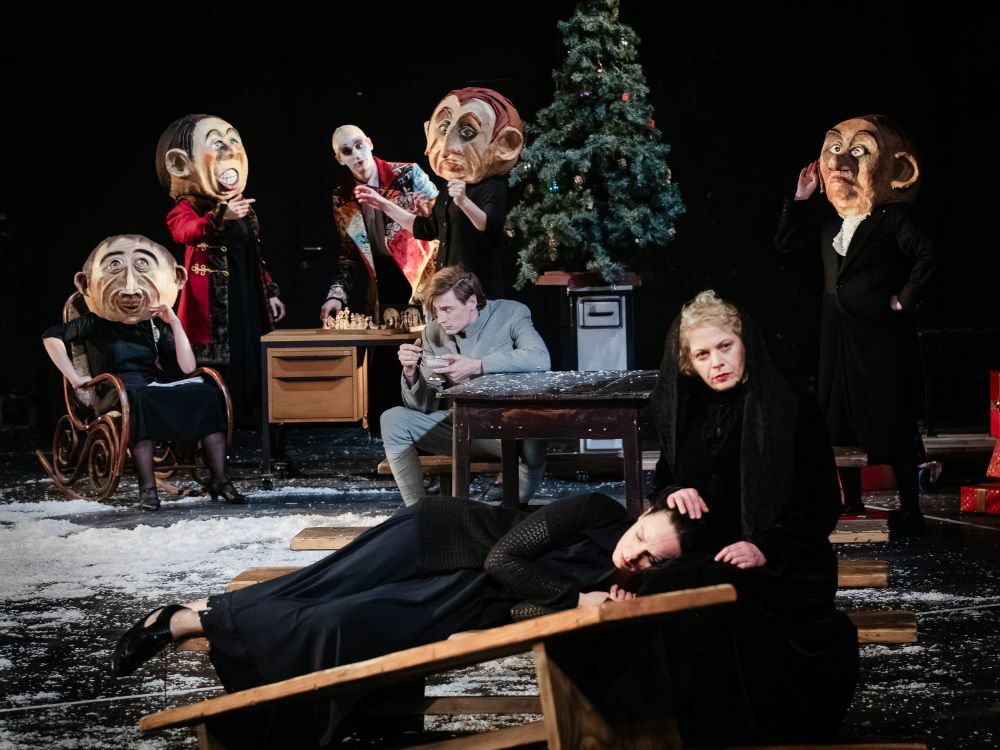 Kroz predstavu nas vodi smireni, stameni, uvježbano stoički narativni glas Petre Svrtan, a Anđela Ramljak, Dora Polić Vitez i Iva Kraljević igraju supružničku, seksualnu i radničku »bezličnost« ženskih likova dviju drama. Glumice, dakle, igraju tipove, a ne likove, što je još Gavella proglasio najopasnijom plićinom hrvatskog glumišta. Mia Melcher s puno promašene ironije i nimalo pobune igra obješenu staricu Ruščukovu iz »Logora«, a jednako tako mlako nastupa i kao Ksaverova supruga zadignute suknje iz »Golgote«. Iznimka u ženskom dijelu ansambla je Katarina Bistrović Darvaš kao uvrijeđena barunica iz »Logora« te Doktor (smrt, bog, vrag, viša sila) iz »Golgote«. Ovoj glumici vjerujemo u ulogama koje igra jer ona nijansira svoje izvedbe, od frivolnih kad je u pitanju barunica do ledenog mira Doktora, ali u kontekstu čitave predstave i Bistrović Darvaš više smišlja skečeve zavođenja mladca negoli ulazi u mogućnost da njezini likovi nisu dramske tapete.