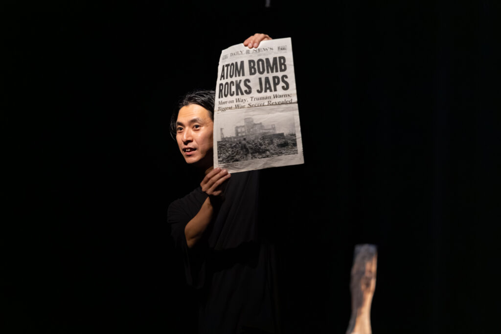Također valja kazati i kako je cjelina protkana humorom koji je dramaturški alat; naime smijeh lagano klizi prema neugodi te postaje svojevrsna ironijska distanca koja maskira i pojačava ono traumatsko, pa publika, iako brehtovski svjesna konstrukta biva (emocionalno) uvučena u narativ. Fragmentarnošću, pripovjednim perspektivama, miješanjem povijesnog, kolektivnog i intimnog, predstava nameće pitanje o povijesnoj istini, percepciji te reprezentaciji, čemu dakako (pot)pomaže i dio kad performer rukama ocrtava kartu Japana, uspoređujući njezin izgled s Godzillom, no ne onom američkom, već originalnom – japanskom. A upravo je (i) taj mali signifikantni dodatak onaj signal o povijesti kao o skupu različitih interpretacija.