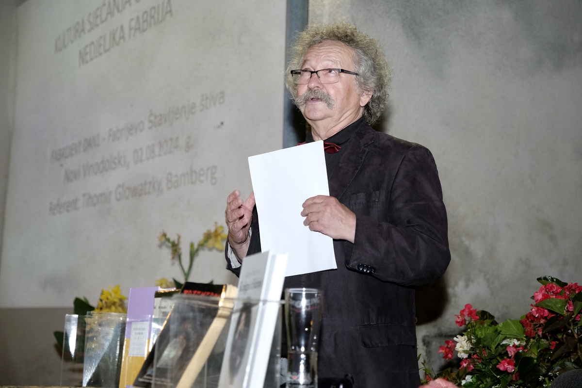 Predavanje o sjećanju, sa sjećanjem na Nedjeljka Fabrija, možda je najbolja opisnica nedavno održanoga predavanja dr. sc. Tihomira Glowatzkog pod nazivom »Kultura sjećanja u romanima Nedjeljka Fabrija«, koje je u sklopu Fabrijeva štavljenja štiva održao dr. sc. Tihomir Glowatzky u Atriju Srićine kuće u Novom Vinodolskom, u organizaciji Narodne čitaonice i knjižnice Novi Vinodolski.