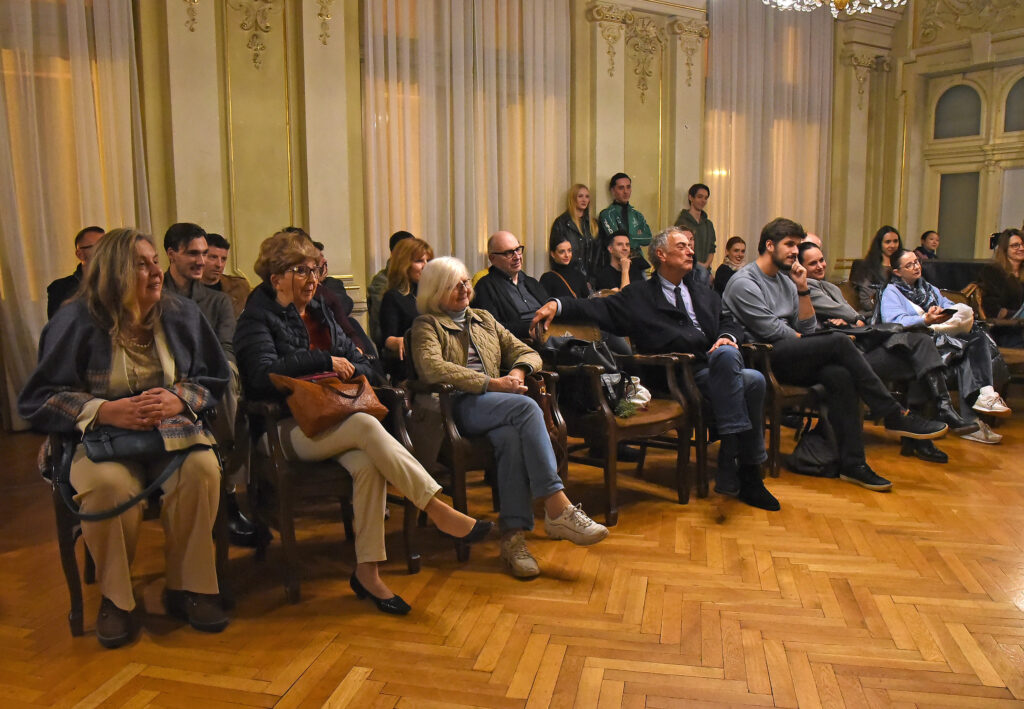 RIJEKA – Uoči sutrašnje premijere plesne predstave »Venezuela«, izraelski koreograf Ohad Naharin u foajeu HNK-a Ivana pl. Zajca proveo je večer razgovarajući sa suradnicima i publikom, a tijekom razgovora su se povukla pitanja, osim o predstavi, o njegovom plesnom jeziku Gaga, kako ples može postojati bez glazbe, ali i bojkotu Izraela, u kojem se nalaze i izraelski umjetnici. Razgovor je moderirao novinar, kritičar i kolumnist Branimir Pofuk.