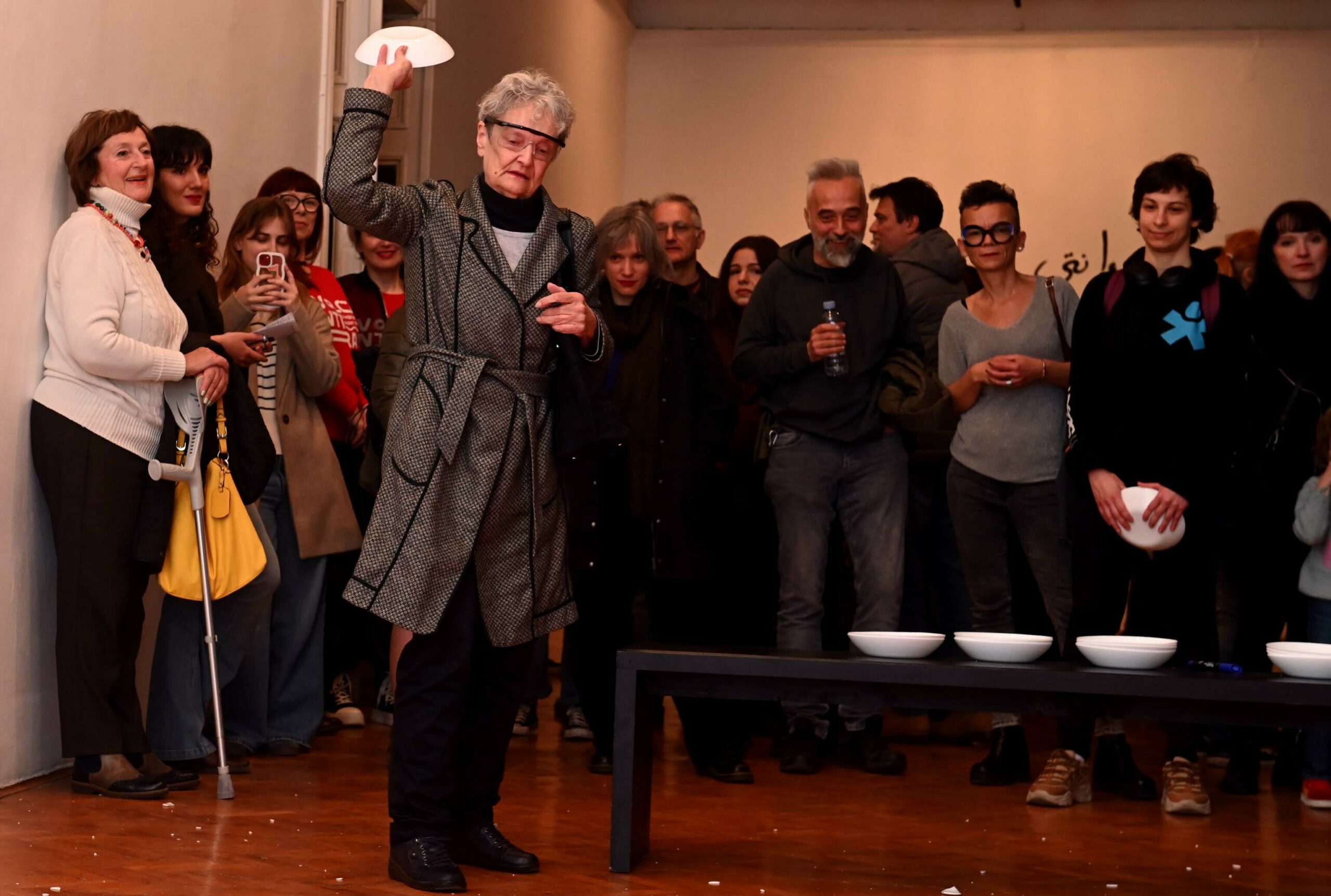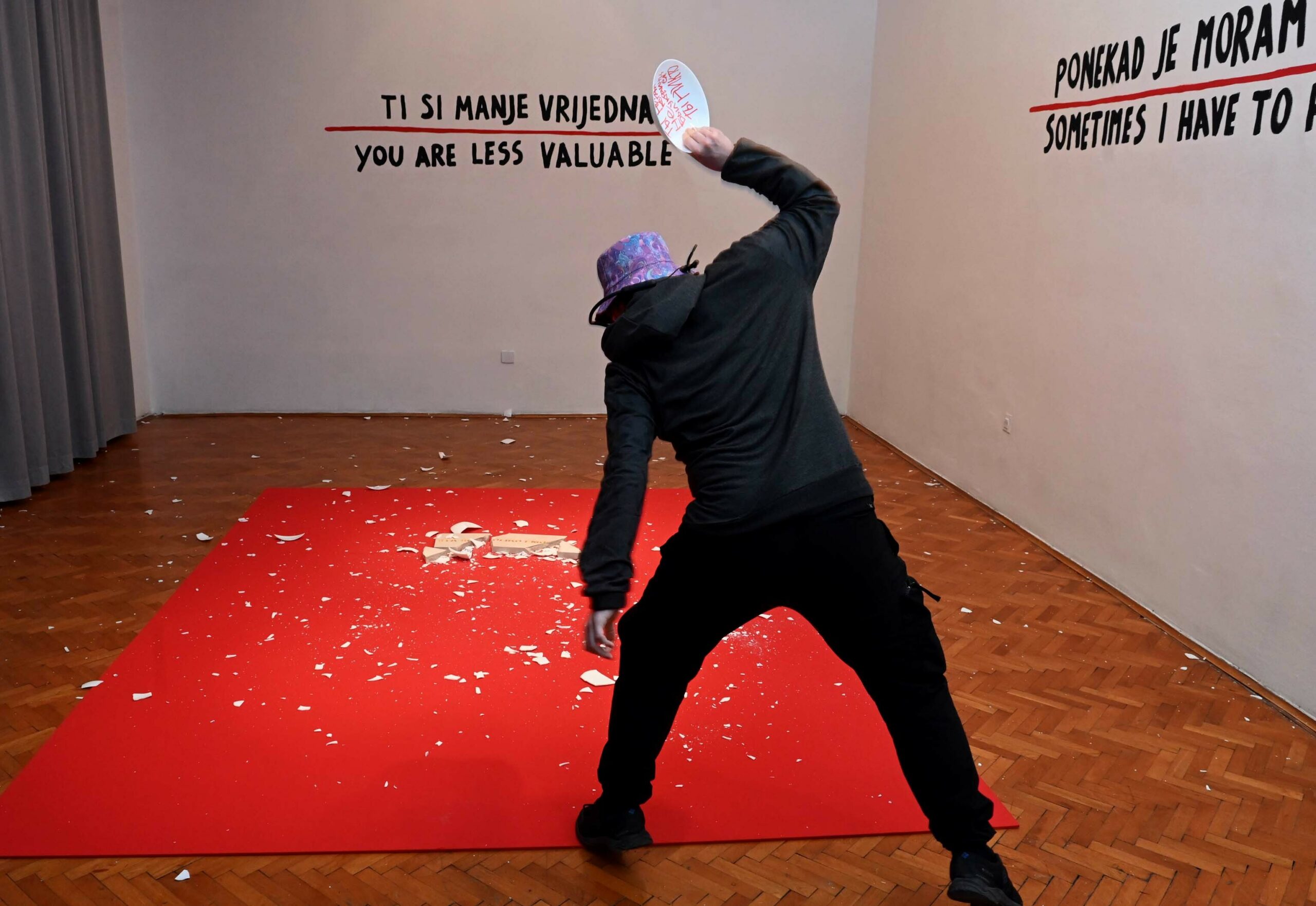 Nakon otvorenja izložbe pri kojem je autorica razbila kameni blok, posjetitelji su imali priliku napisati rečenicu u dodatnu knjigu, sličnu onoj iz naslova izložbe, ili pak rečenicu napisati na tanjur kojeg bi potom i sami razbili o pod stavljajući se u perspektivu autorice izložbe.