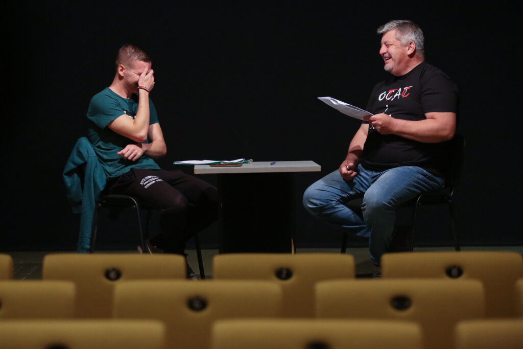 – I inače, skoro i privatno. I tu je u novoj predstavi trebao biti taj strah i sin koji stane na majčinu stranu dok sve svaljuju na mene. Međutim, glumica koja je trebala biti moja supruga bila je spriječena i nismo znali što sada. A tad se taman počelo brujati o vojnom roku. I to nam se učinilo interesantno, taman toliko da se počela radit predstava u kojoj sina učim kako će biti u vojsci.