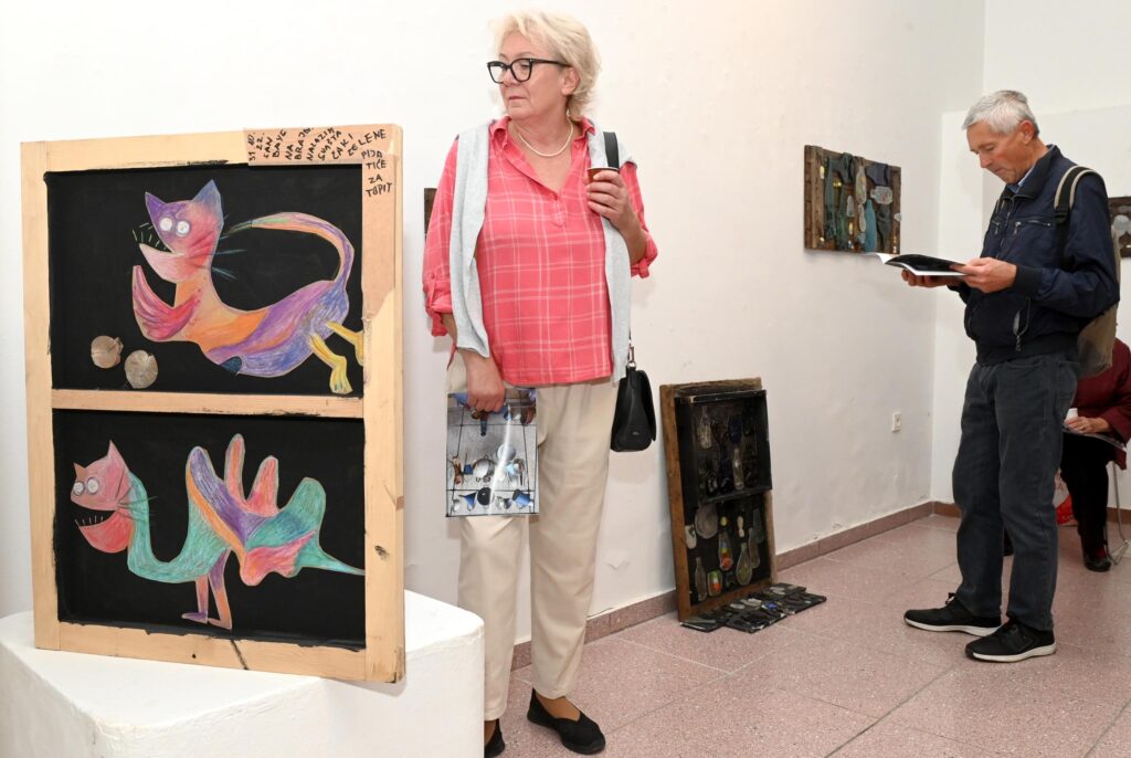 – Najprije sam počela voditi dnevnik samo preko ljeta da vidim temperaturu mora, vrijeme i tako dalje. Onda kada sam otišla u mirovinu sam počela svaki dan zapisivati, nacrtati sunce, oblak ili kišu, a iz tih dnevnika sam izvukla neke ekstreme: sedmi mjesec ove godine koji je bio ekstremno vruć, ekstremi kada je bilo hladno, kada je bio potop… Crteži su jednostavni, više su kao crtački zapisi, a sve je povezano i s tom ruzinom i s odbačenim stvarima. Stakleni primjerci su stare bočice tj. dišpari, a ono što nikome ne treba – to mene veseli. Njih sam topila u peći za keramiku s tim da su dodana stakalca za mozaik i murano staklo – kazala je Dunja.
