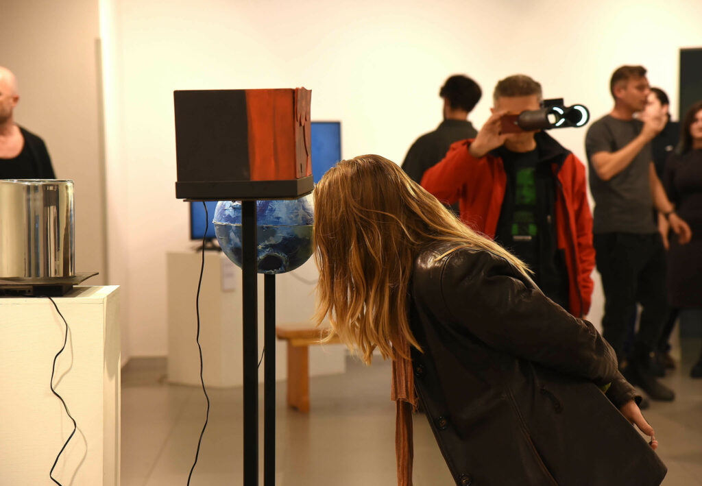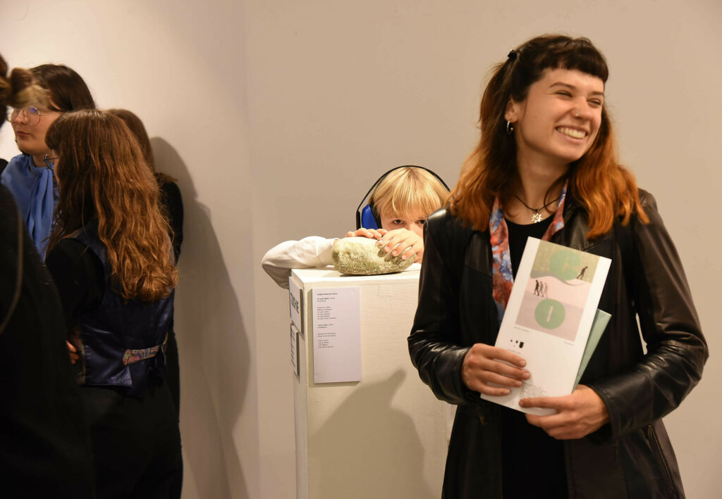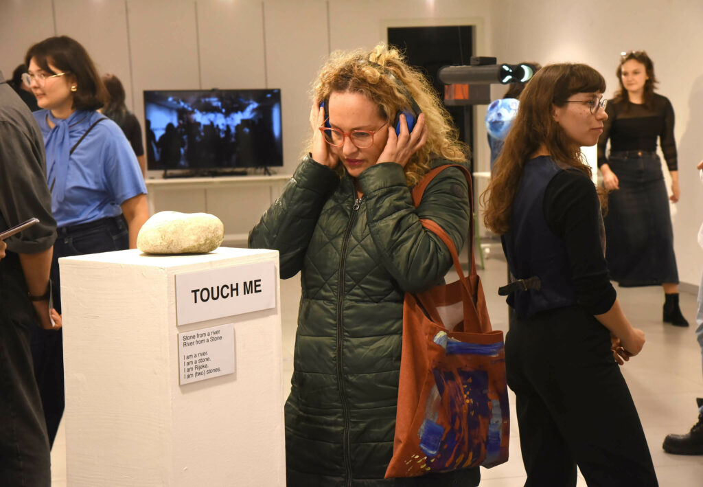 Student Gašper Rebernik, ujedno koautor koncepcije i sudionik izložbe, proveo je prisutne kroz postav te predstavio radove i njihove autore. Izloženi radovi istražuju različite pristupe suvremenim temama kroz multimedijske, interaktivne i imerzivne forme.