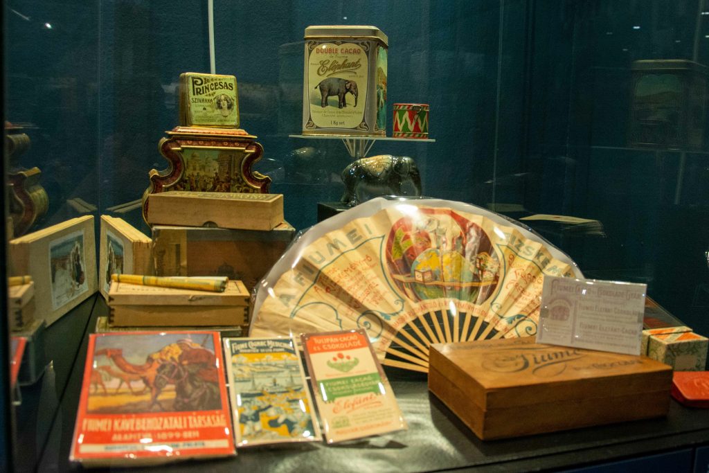 Bio je ovo ujedno uvod u ovu izložbu koju smo imali priliku razgledati u društvu autora knjige, a koji su nam kako smo obilazili eksponate, koji su izloženi u prizemlju te na prvom katu muzeja, otkrili i »skrivene« priče vezano za pojedine predmete u kojima publika može uživati tijekom razgledavanja postava, poput primjerice prikaza Rijeke s kraja 19. stoljeća, na kojem se mogu vidjeti dijelovi grada koji su uništeni tijekom Drugog svjetskog rata ili preslike fotografija na kojima se vidi kako su napredovali radovi u gradu. Posebni kutak koji su priredili ravnatelj Mađarskog muzeja za trgovinu i ugostiteljstvo Róbert Török i njegov tim predvođen kustosom Ádámom Baloghom pokazuje bogatstvo ponude kad su u pitanju omiljeni napitci kao što su kava, čaj i riječka čokolada čiji je zaštitni znak prepoznatljivi slon. No, tu su još i reklamni plakati i lepeze, a prikazano je i kako su se modirale ondašnje dame.
