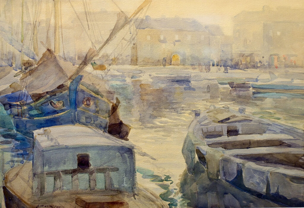 Josip Moretti Zajc: »Rijeka – Mrtvi kanal«, akvarel na papiru, oko 1910.