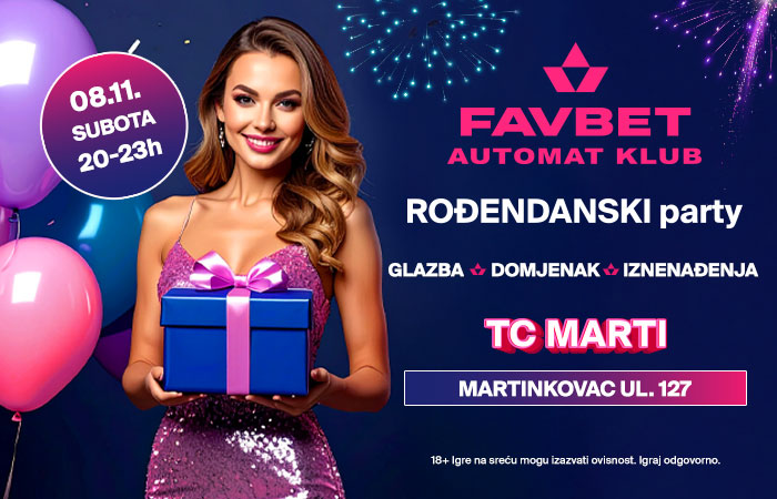 U subotu, 8. studenog, u TC Marti u Rijeci, održat će se rođendanska proslava Favbet Automat Kluba. Od 20 do 23 sata, posjetitelje očekuje večer ispunjena zabavom, glazbom uživo i besplatnim domjenkom, a svi su dobrodošli.