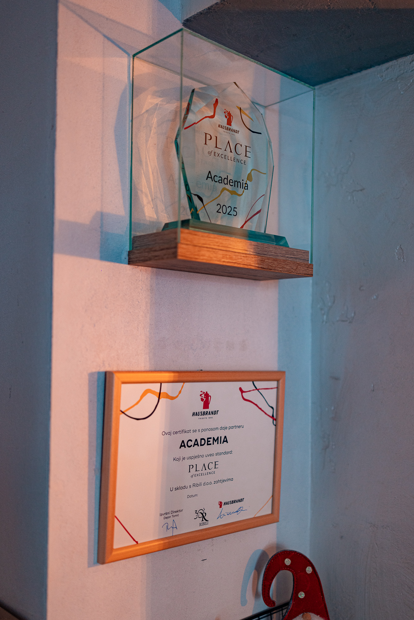Certfikat Place of Excellence osmišljen je s ciljem prepoznavanja partnerskih ugostiteljskih objekata koji kontinuirano održavaju visoke standarde u pripremi i posluživanju kave. Mjesta izvrsnosti moraju posluživati najbolje blendove Hausbrandt kave i ostali premium asortiman te brinuti o dosljednosti kvalitete kako bi svojim gostima dali cjelovito i autentično iskustvo. Evaluacija objekata provedi se putem nenajavljenih i uzastopnih audita što omogućuje realnu, nepristranu i vjerodostojnu procjenu u svakodnevnim uvjetima rada. Iako je najveći naglasak na kvaliteti kave, promatra se cjelokupan doživljaj, a u prvom valu audita sedam objekata je ispunilo kriterije te oni sada ponosno nose titulu “Mjesta izvrsnosti”.
