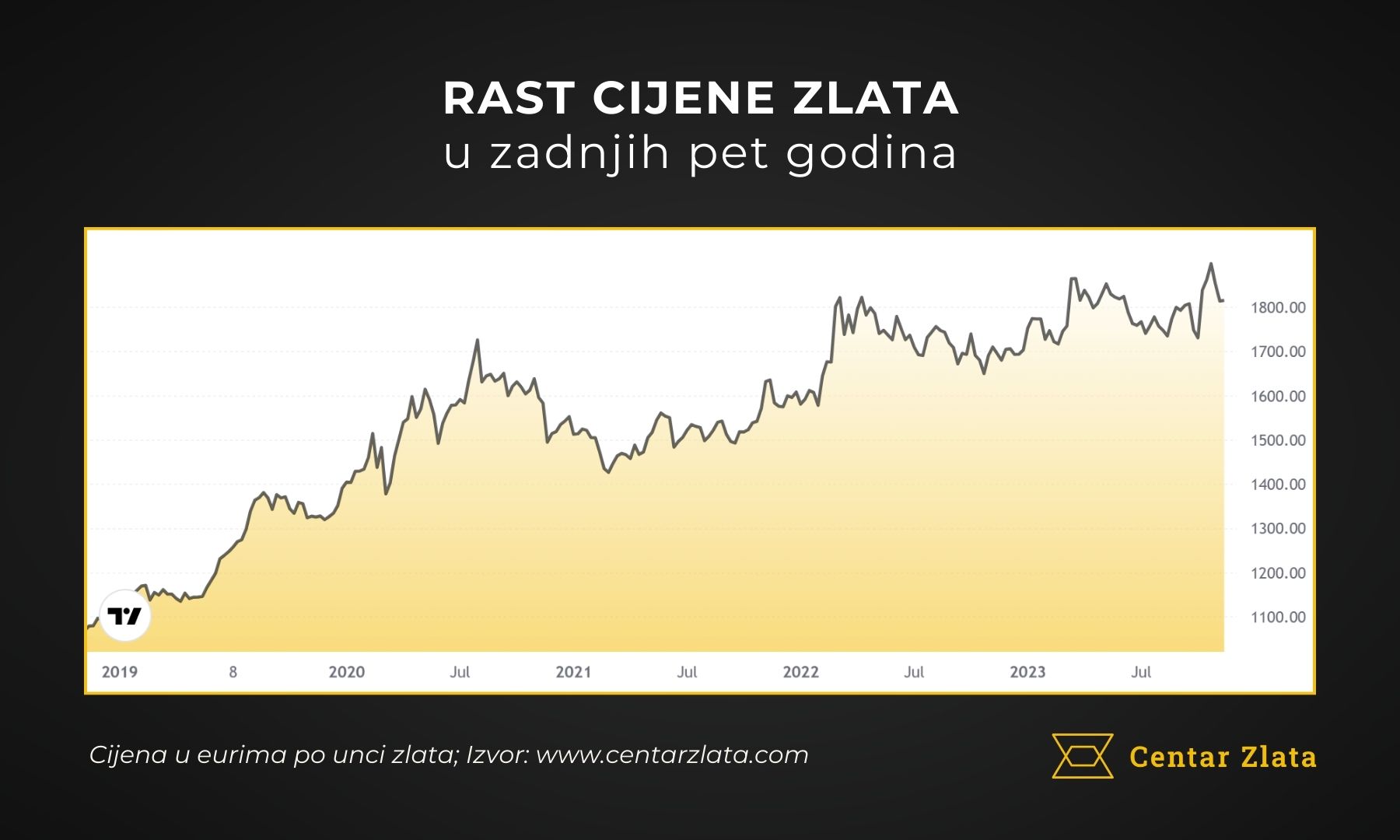 Cijena zlata u eurima u zadnjih je dvadeset godina narasla za 440%, a u zadnjih pet godina za oko 65%. Prosječno gledano, cijena je na godišnjoj razini rasla oko 8.3%, što je znatno više od kamata na bankovnu štednju, ali i od većine drugih oblika ulaganja poput nekretnina ili domaćih fondova.