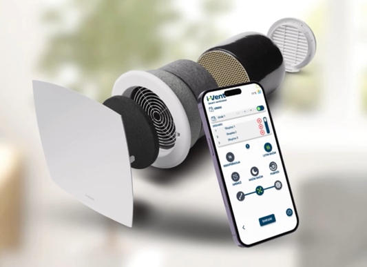 Stalnom izmjenom zraka u prostoru koju vam omogućujemo pomoću decentralizirane ventilatorske  jedinice  I-Vent višak vlage će nestati a kvaliteta zraka itekako poboljšati. Decentralizirana ventilacija s povratom topline odnosno hladnoće je najfleksibilniji i najprikladniji sustav. Za razliku od masivne centralizirane ventilacije, ovaj sustav omogućava uklanjanje ili obnovu ventilacijske opreme bez prekida aktivnosti u prostoru. Ova pametna ventilatorska  jedinica osigurava konstantan protok zraka u vašem prostor, bez gubitka temperature u prostoriji. Radi 24/7 tj. konstantno, a jedina briga oko nje je svaka tri mjeseca oprati filter (radnja zahtjeva 5 min vremena). Zaboravite na otvaranje prozora i ljeti i zimi! Uz 4 načina rada, u našoj mobilnoj aplikaciji  i-vent remote control v2,  podešavajte po želji brzinu i način rada (ljetni, zimski, noćni i dnevni ili početni modul). Na početnom modulu glasnoća rada ventilacije je 20dcb ili stručno pojašnjeno, kao šapat u daljini.