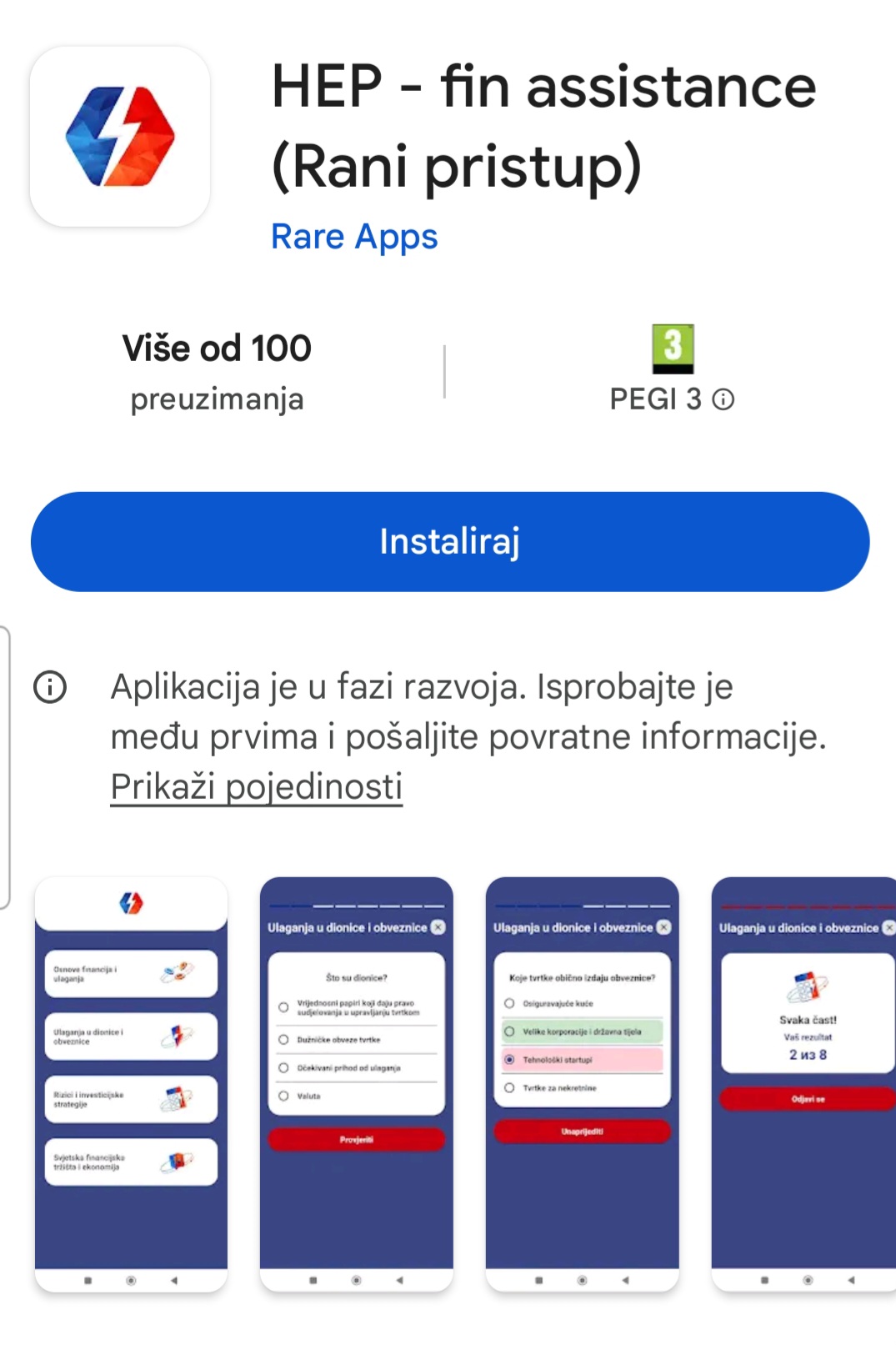 Obavještavamo javnost da smo zaprimili smo više dojava građana o ponudi aplikacije HEP fin u Google Play trgovini.