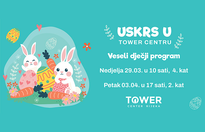 Povodom nadolazećeg Uskrsa djecu i njihove obitelji u Tower Centru Rijeka očekuju veseli animacijsko-kreativni sadržaji ispunjeni predstavama, radionicama i susretima s maskotama.