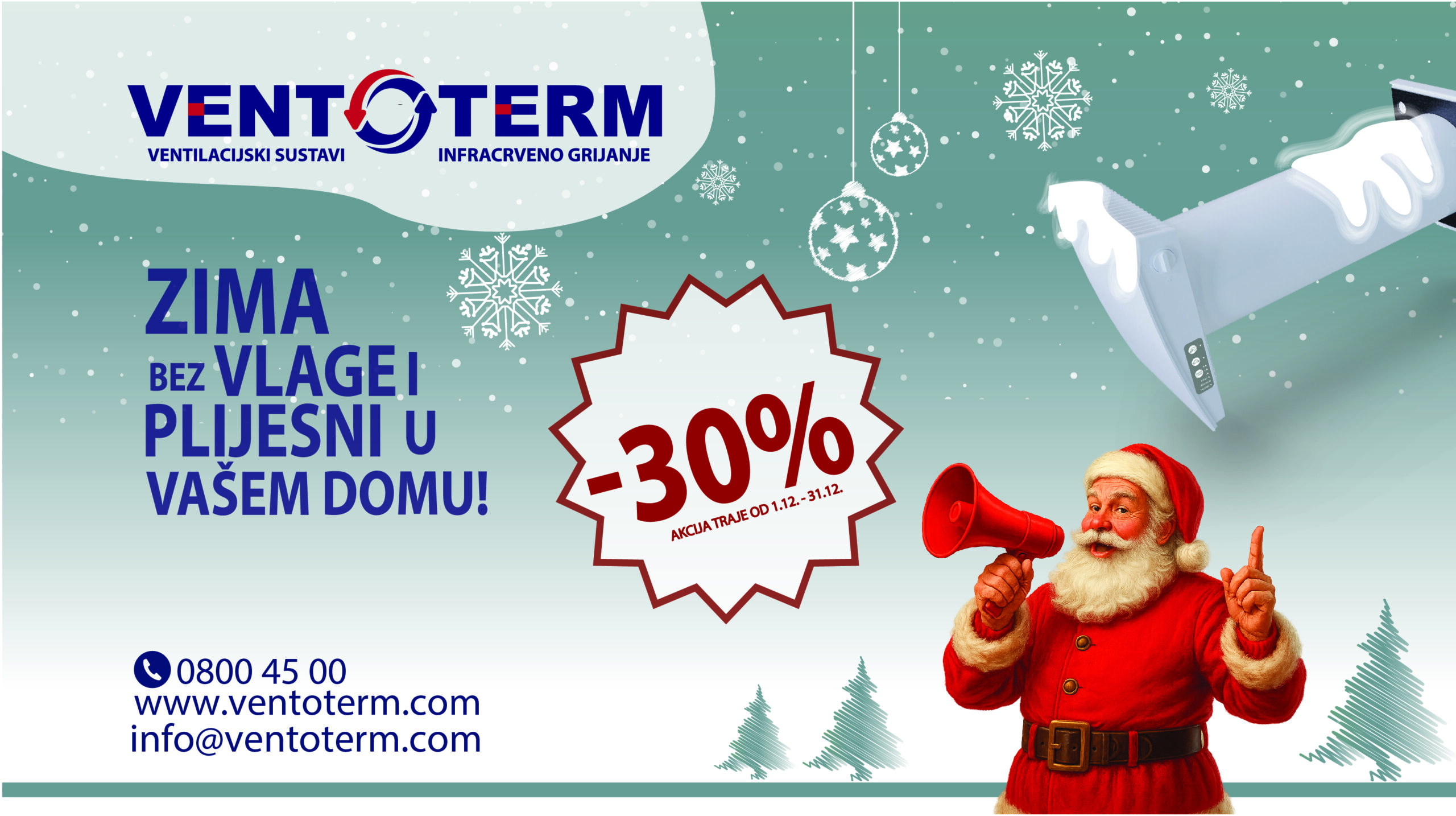 Iskoristite akciju od čak 30 % do kraja mjeseca i nazovite za besplatnu ponudu i izvid na 0800 45 00 ili ispunite obrazac na www.ventoterm.com.