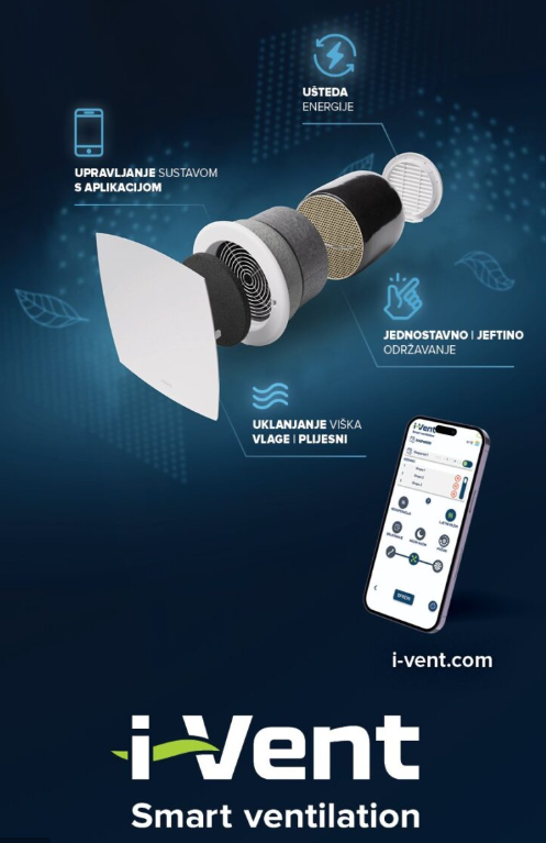 Ventilatorskim jedinicama I-Vent možete upravljati i udaljeno preko IOS ili Android aplikacije te ih podesiti na željeni način rada (noćni, dnevni, ljetni, zimski ili početni modul). U početnom modulu, glasnoća rada ventilacije je 20 dcb, tj. kao šapat u daljini. Montaža se izvodi visoko u kutove prostorija stoga vizualno ne narušuje izgled prostora. Ventilator troši električne energije manje od cijene jedne šalice kave godišnje, a vaša jedina briga je održavati filter čistim. Ne zaboravite; Klimatizacijski uređaj, za razliku od rekuperatora, ne mijenja zrak u prostoru, već ga samo hladi ili zagrijava, čime se regulira temperatura bez utjecaja na kvalitetu zraka ili njegovu vlažnost.