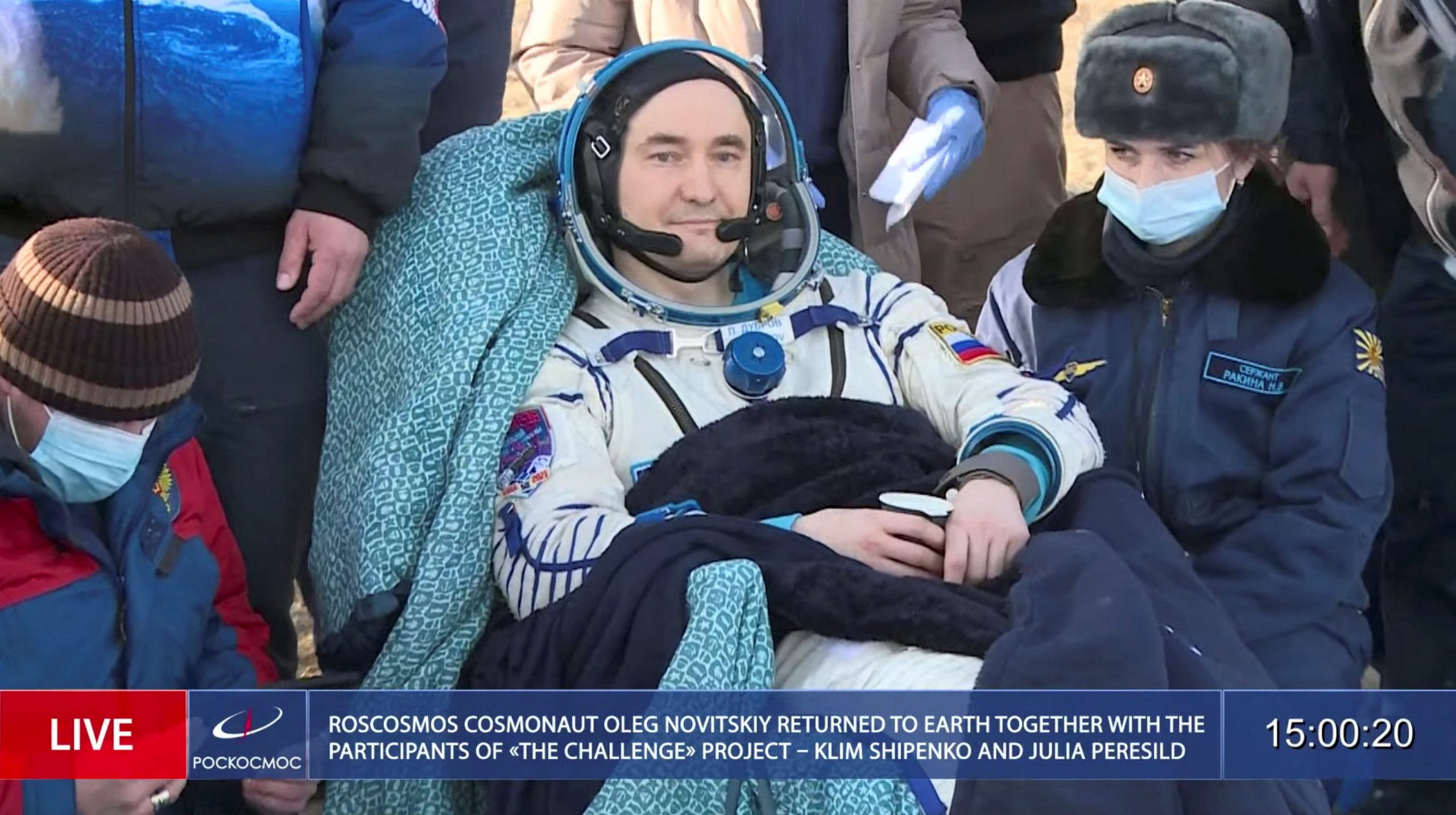 Ruska svemirska agencija Roscosmos emitirala je snimku slijetanja iz kazahstanske stepe i rekla da je skupina tehničkih i medicinskih stručnjaka poslana da pomognu astronautima da izađu iz kapsule.