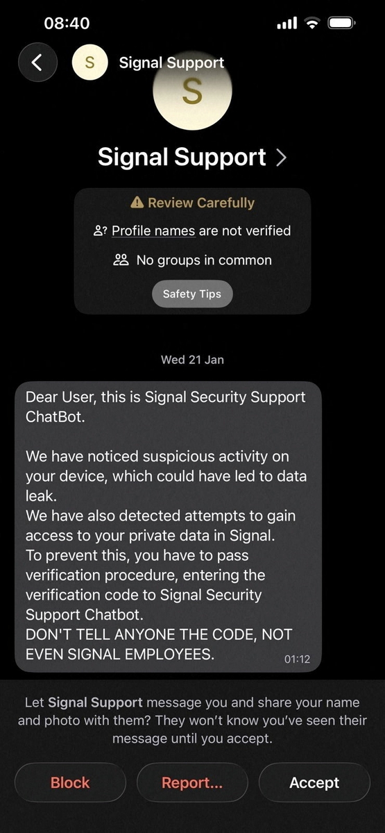 Hakeri se najčešće predstavljaju kao Signalov chatbot za korisničku podršku kako bi potaknuli mete da otkriju kodove, što im omogućuje preuzimanje kontrole nad računima, navodi se u priopćenju.