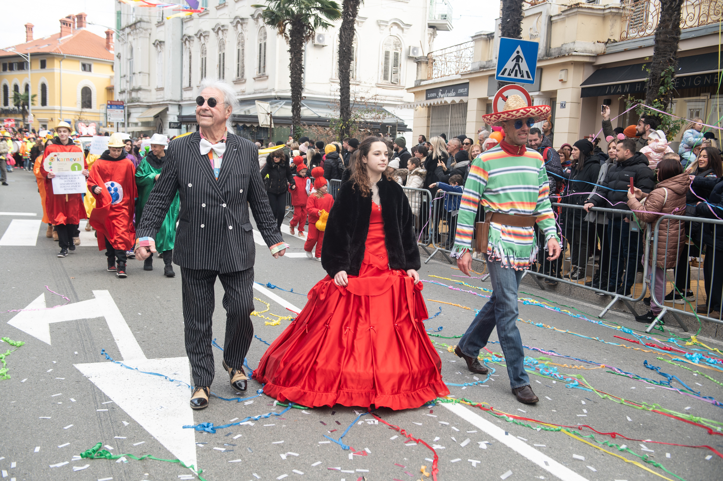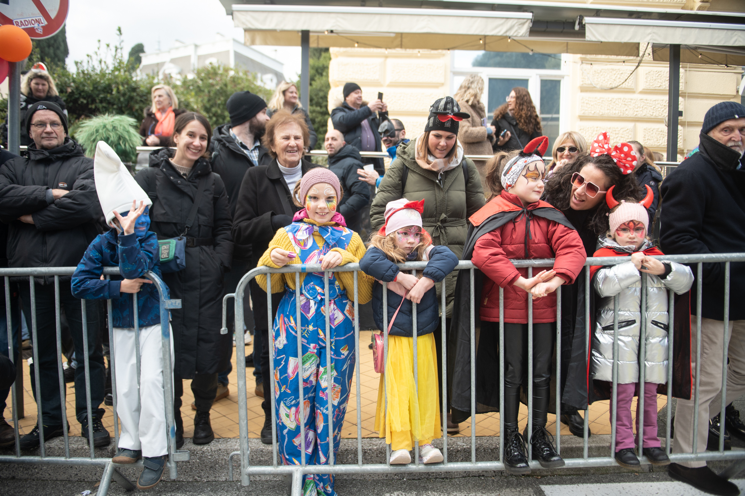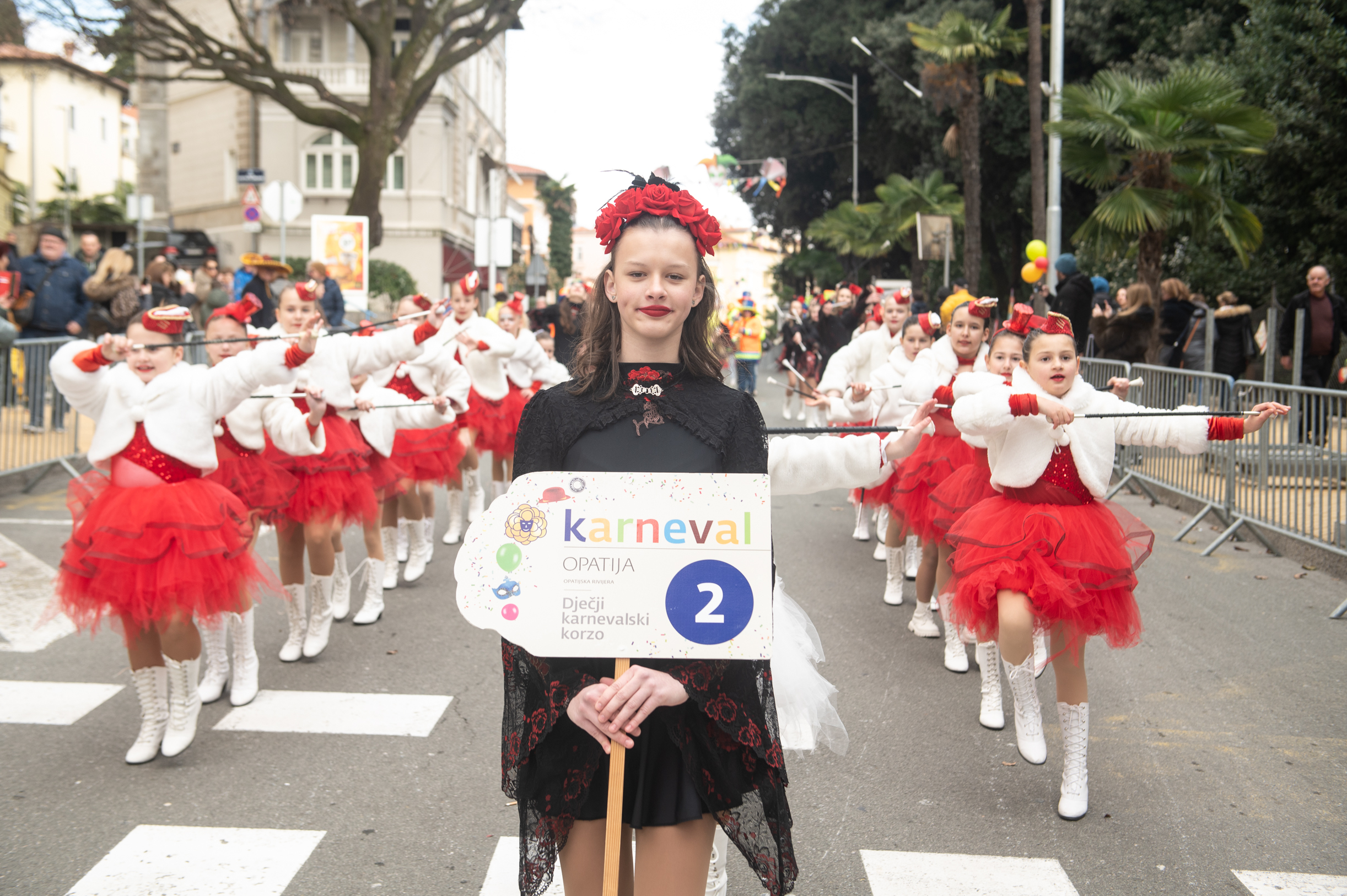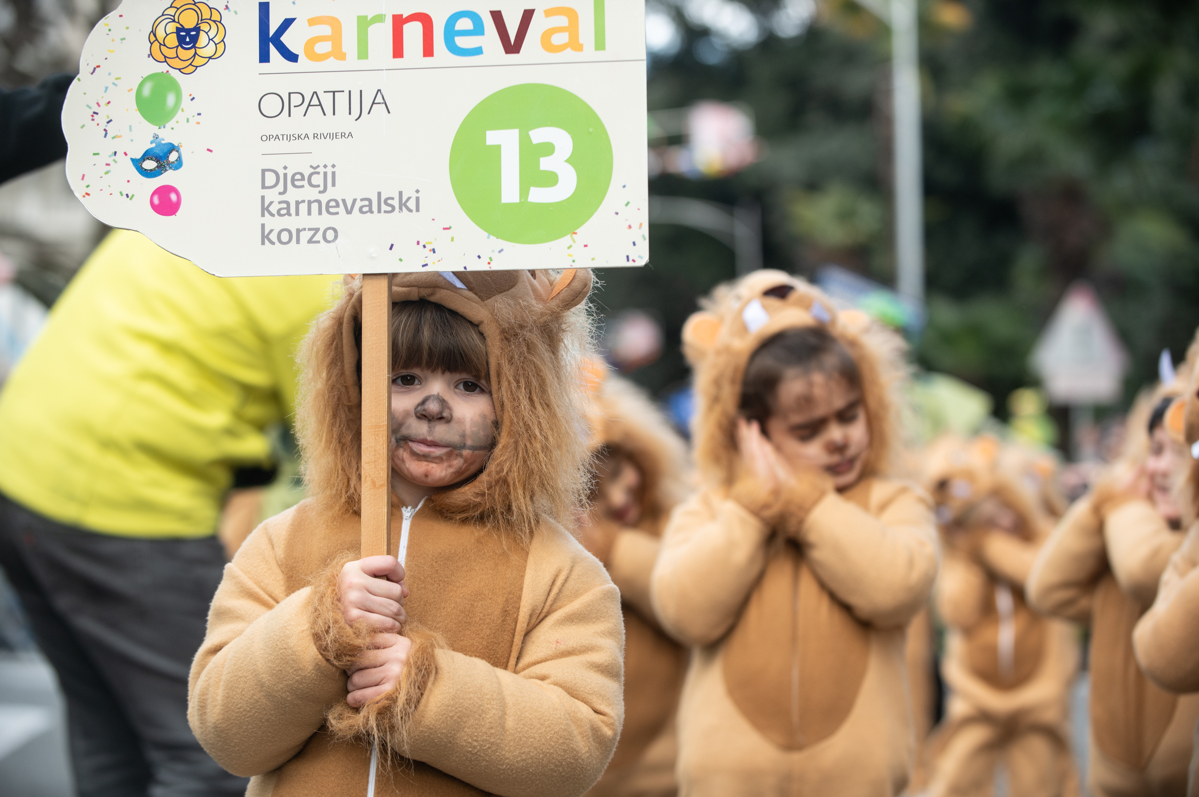 Najmlađi karnevalisti iz svih dijelova Hrvatske svoje su bogato izrađene i unikatne kostime predstavili na pet pozornica duž karnevalske rute, a koreografije su im bile odlično uvježbane. Na Tržnici ih je prvi pozdravio Joso Krmpotić, a zatim i gradonačelnik Fernando Kirigin, pusni gradonačelnik Duško Jeličić Dule te dječji gradonačelnik Mihael Šorić, dok su ih ispred hotela Paris, nasuprot Tiska Medije i ispred hotela Milenij dočekivali i bodrili Lena Stojiljković, Neno Pavinčić i Iva Črnjar Ivančan. Povorka je završila na kupalištu Slatina uz Dražena Turinu Šajetu i animatore, a maškarice su nagrađene krafnama, voćem i sokovima. Prema tradiciji, Dječji maškarani korzo su zatvorili Halubajski zvončarići, podmladak uz čiju je gromoglasnu zvonjavu definitivno zaustavljena svaka pomisao na tmurno nebo – Opatiju i sve posjetitelje zagrlile su sunčeve zrake i dodatno uljepšale maškaranu priču.