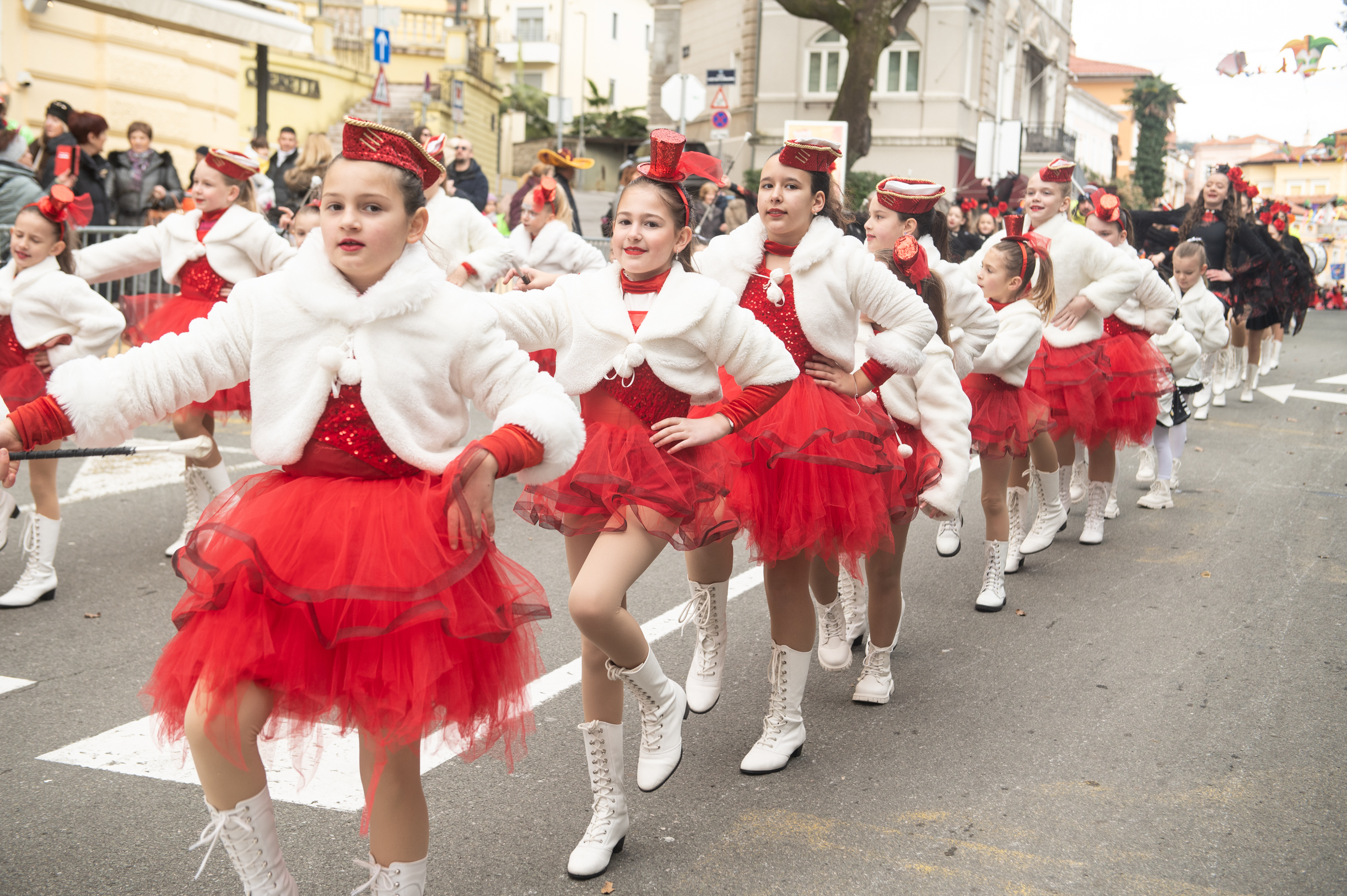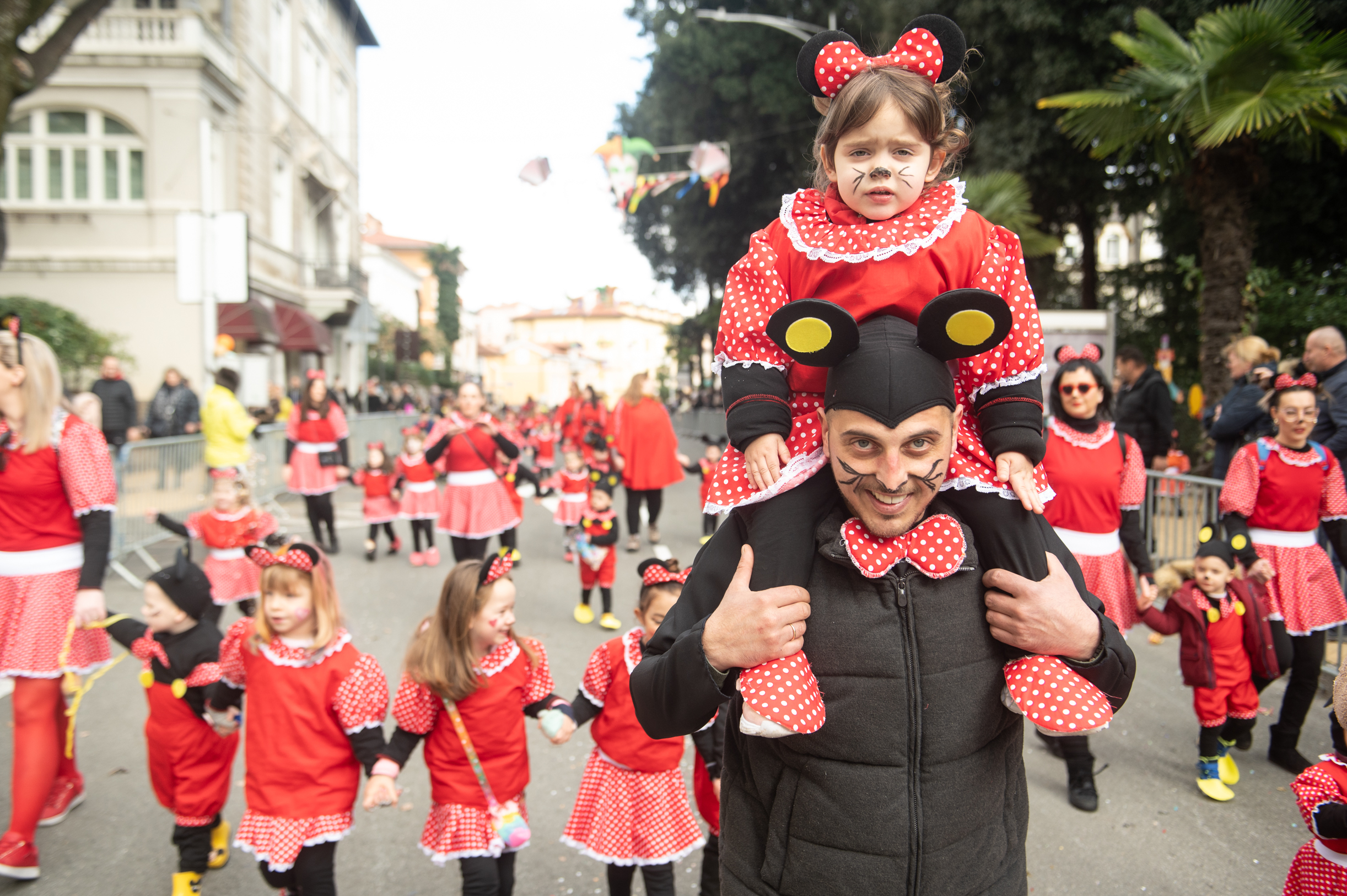 Točno u podne, paradu maškarica otvorilo je Društvo Naša djeca, odnosno Dječje gradsko vijeće grada Opatije, na čelu s dječjim gradonačelnikom Mihaelom Šorićem, predstavljajući masku »Djeca – zagovaratelji dječjih prava«. Tradicionalnu rutu od gradske tržnice do Slatine u odabrane je note odjenuo Puhački orkestar Lovran, a nastupile su i male mažoretkinje Opatijske rivijere te iz Nedelišća i Pule.