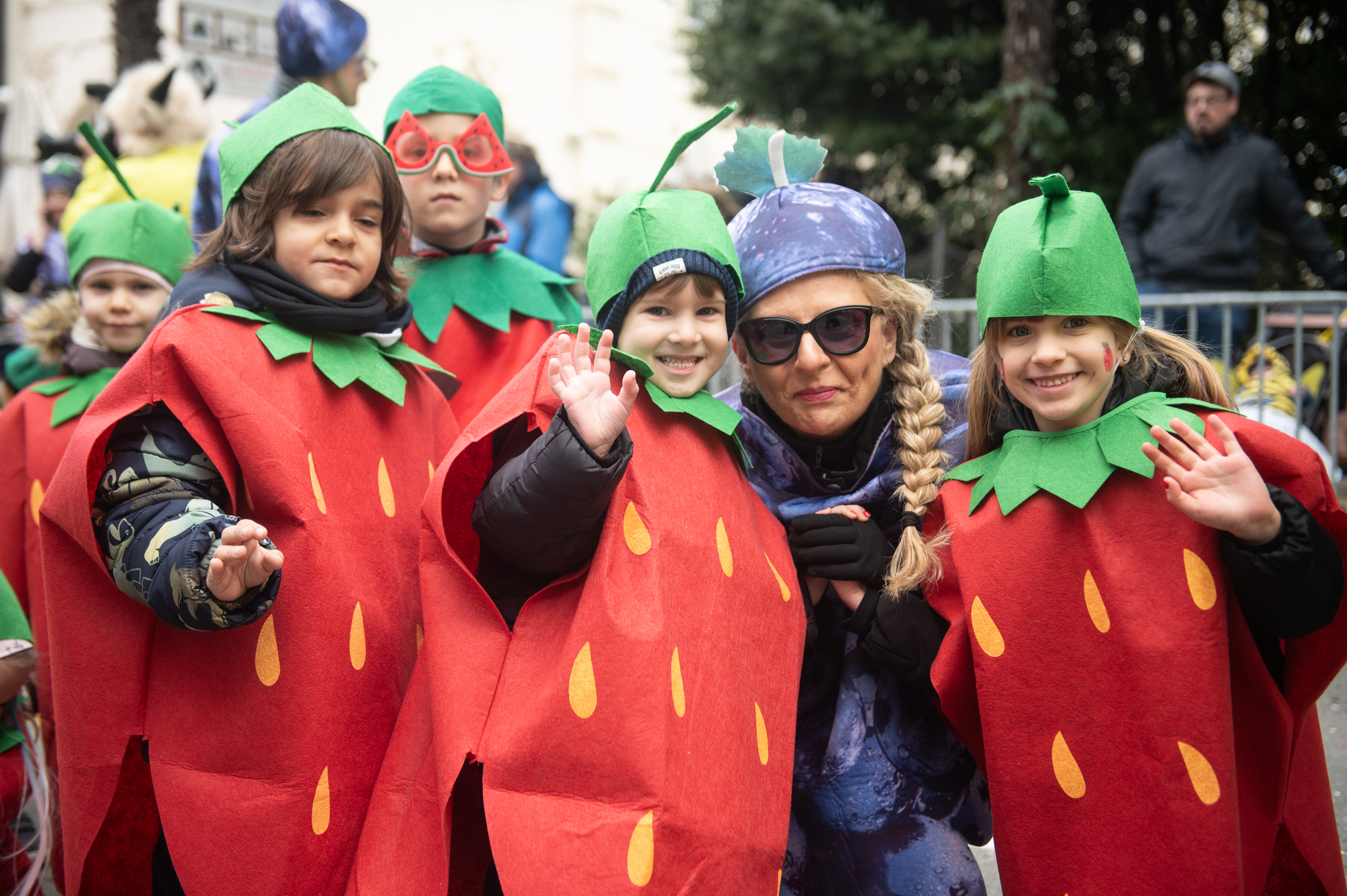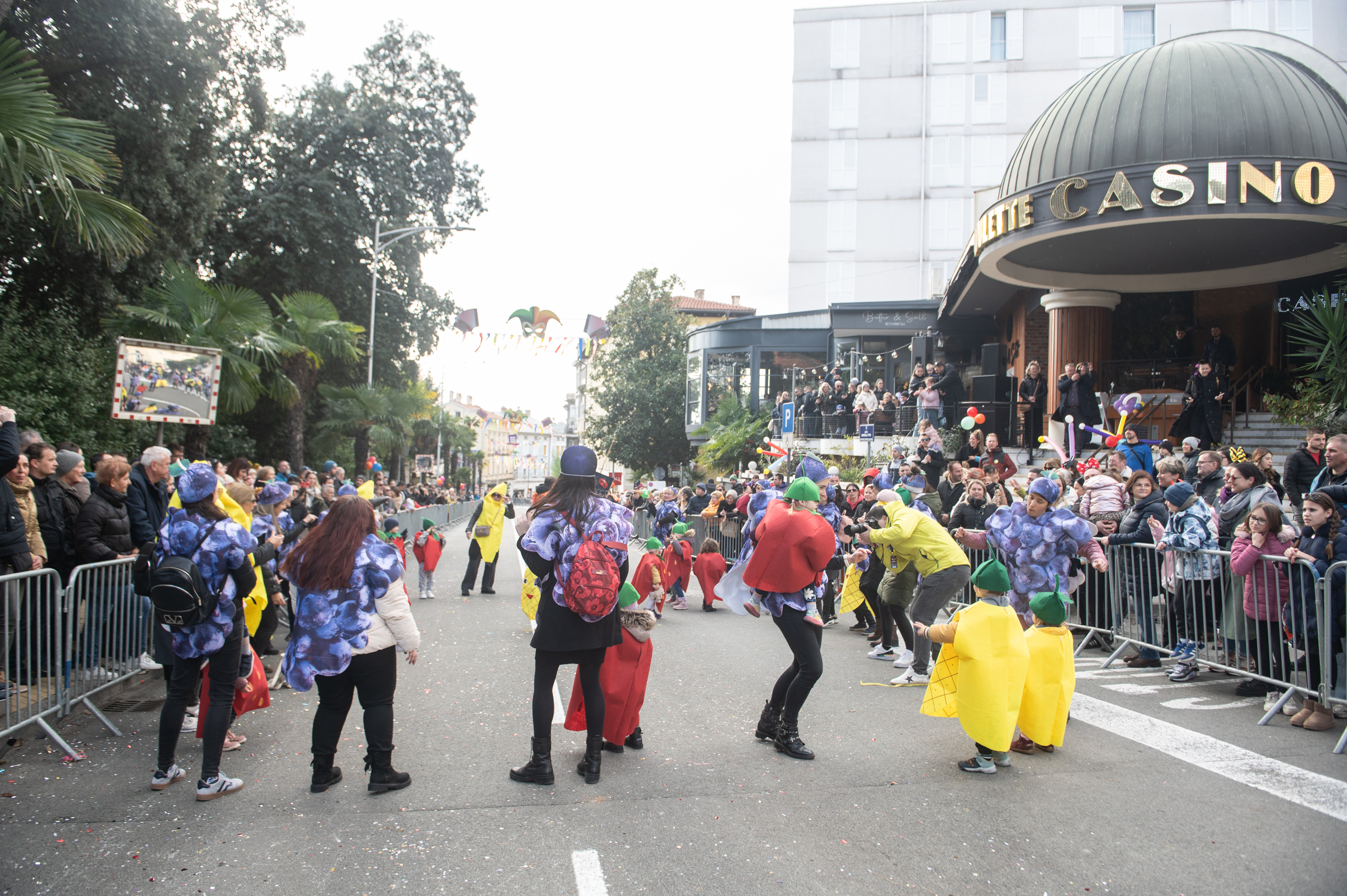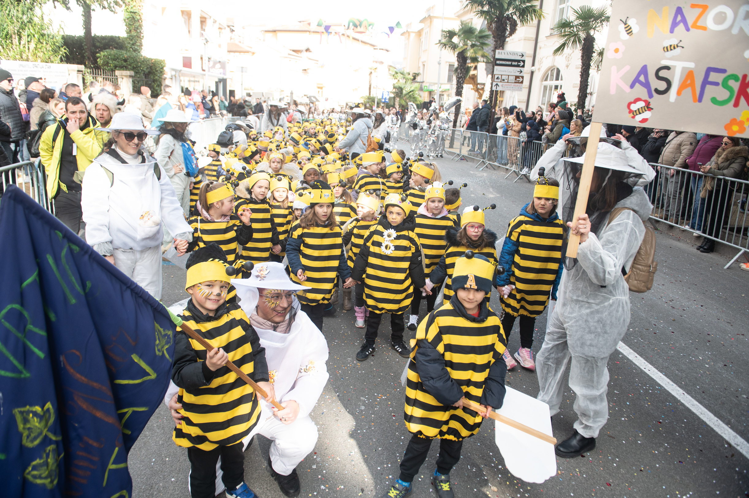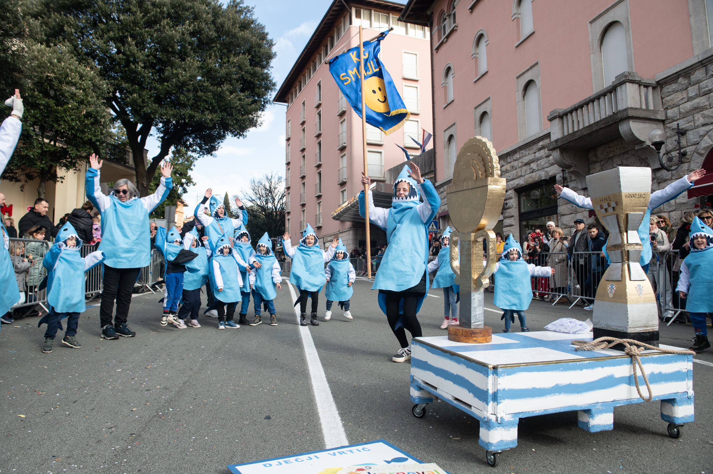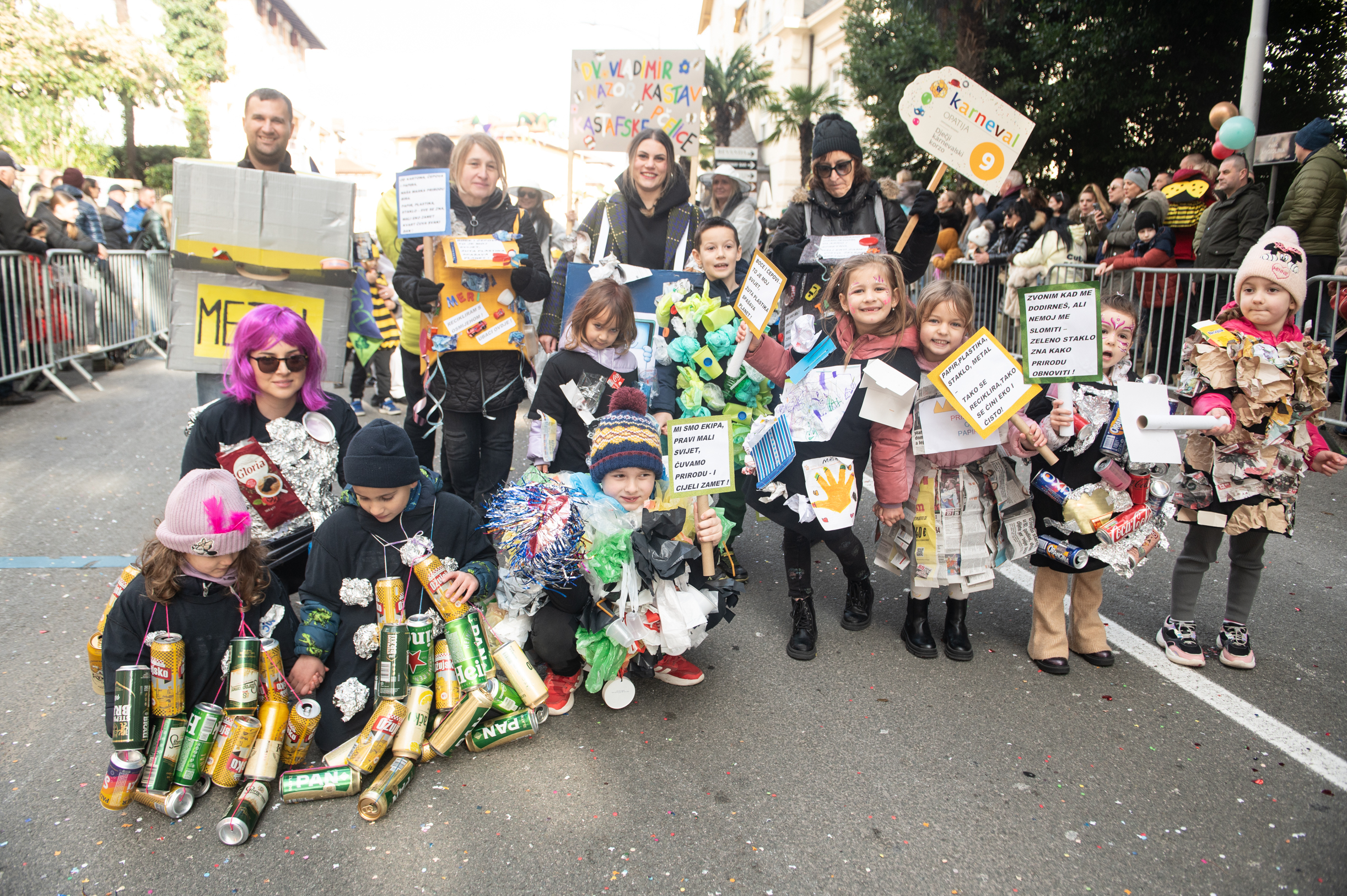 U jednoj od najvećih grupa od čak 335 osoba nastupili su maskirani u mišiće i mišice – Mikije i Minice mališani iz Dječjeg vrtića Opatija, odnosno iz vrtića Lovran, Ičići, Volosko, Poljane i Veprinac, još brojniji su bili srdočki školani s maskom »Hoću Ri, Hoću Je, Hoću Ka, Mi Smo Rijeka!«, a nisu zaostajali niti brojčano, niti po ljepoti niti kastafske pčelice i pčelari iz DV »Vladimir Nazor«, baš kao niti mnogi drugi. Središtem grada prodefilirali su tako uz ostale i Candy Land, Rasplesane note, Nevera s Vojaka, Lovranska legija, Kraljevska utrka konja, Male vrbe, Žireki, Voćni karneval, Lavlje carstvo, zvjezdice i mjesec, zagorska »ekipa z placa«, pa čak i Ujedinjeno Kraljevstvo i brojne druge kreacije. Nastupila su djeca iz Primorsko-goranske, Istarske, Zagrebačke i Krapinsko-zagorske županije te iz Like, Međimurja i Slavonije i svojom spontanošću i energijom pretvorile grad u veliku pozornicu nesputanog veselja i mašte.