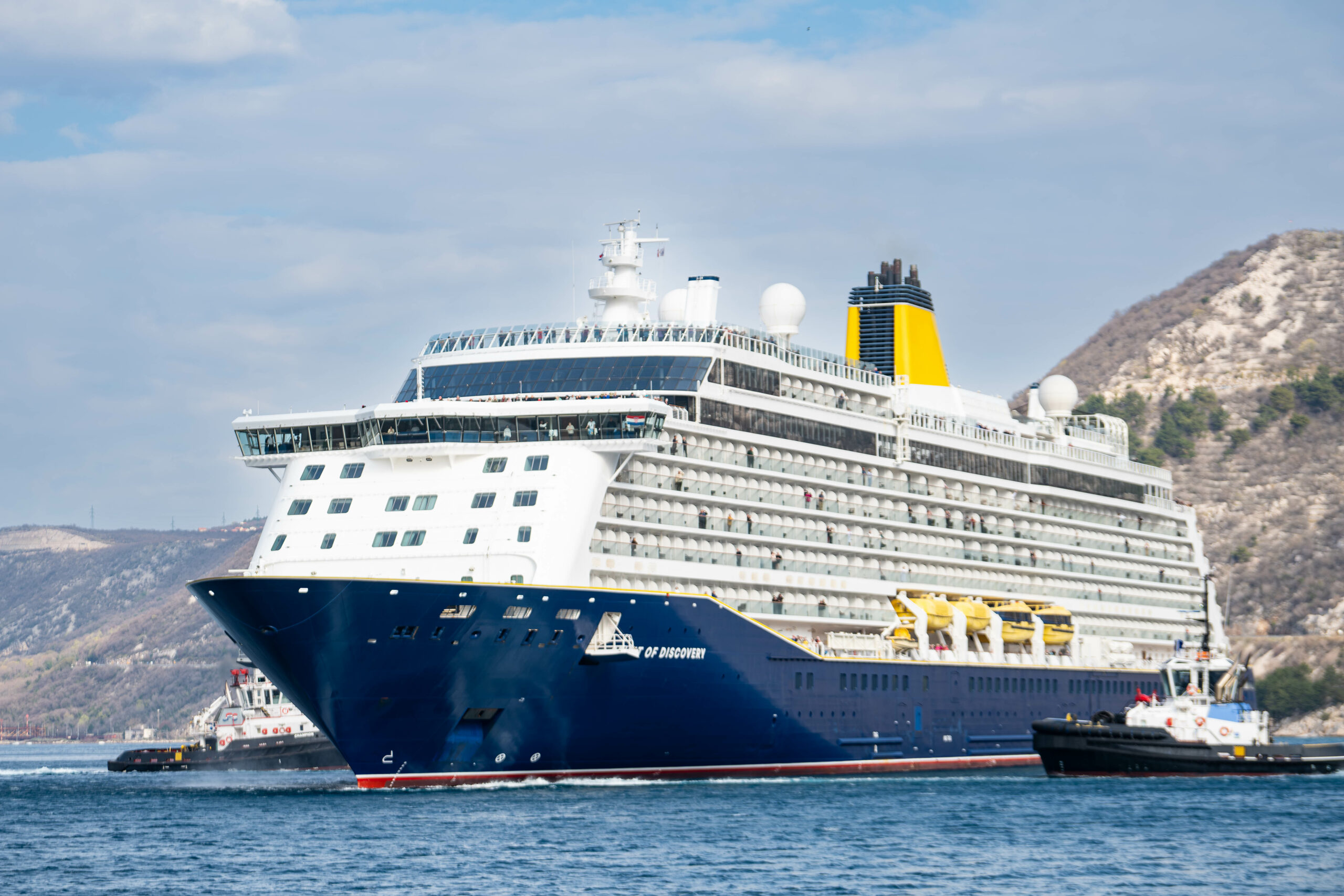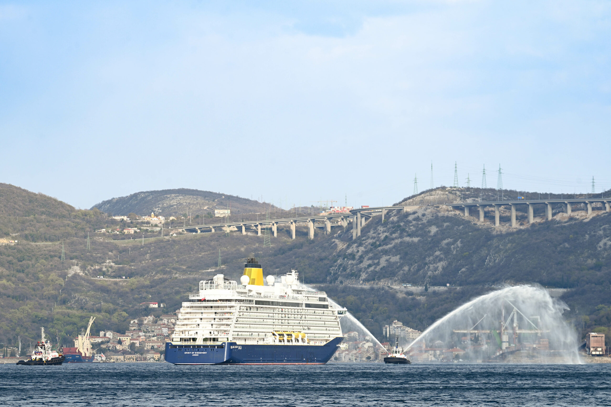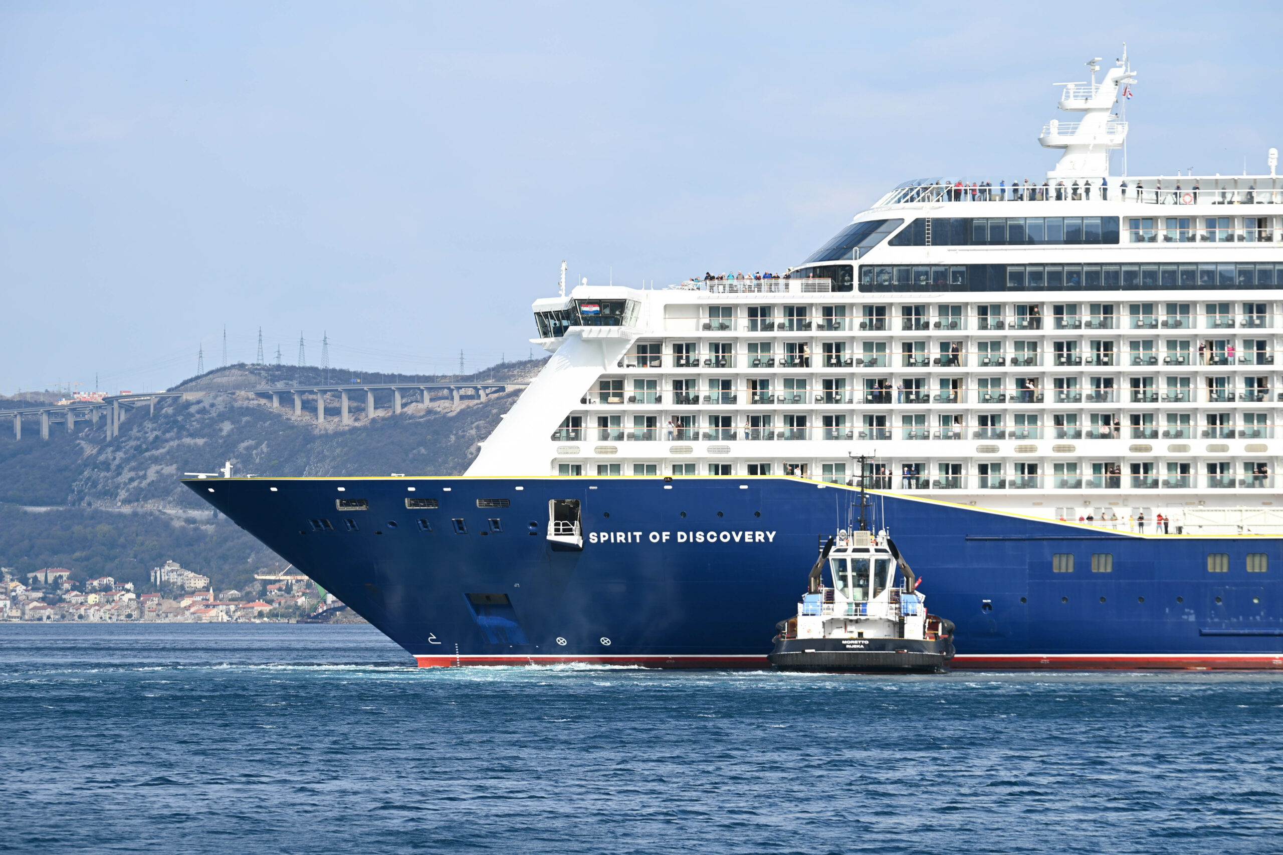 BAKARAC – Duž cijele rive, od Kraljevice do Bakra, kolona ljudi svjedočila je jutros jednom uistinu povjesnom trenutku – prvom dolasku jednog kruzera u bakarski zaljev. Luksuzni kruzer “Spirit of Discovery” uplovio je u bakarski zaljev u sklopu posebnog putovanja naziva “Capitan Franko’s home coming cruise”, kojega je osmislio zapovjednik broda Franko Papić, rođeni Bakarčan i četvrta generacija pomorskih kapetana, koji već dvadesetak godina živi na Kukuljanovu.