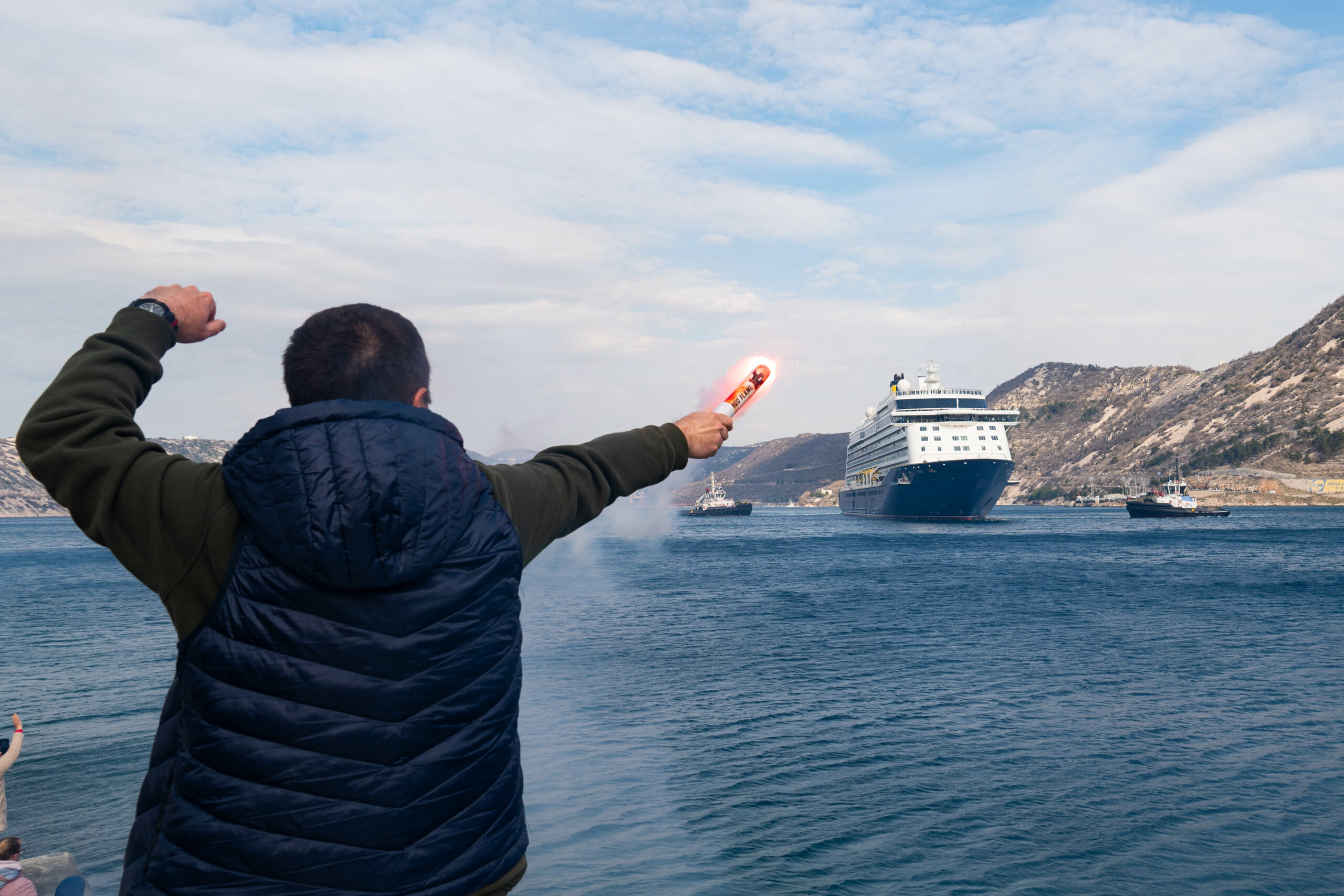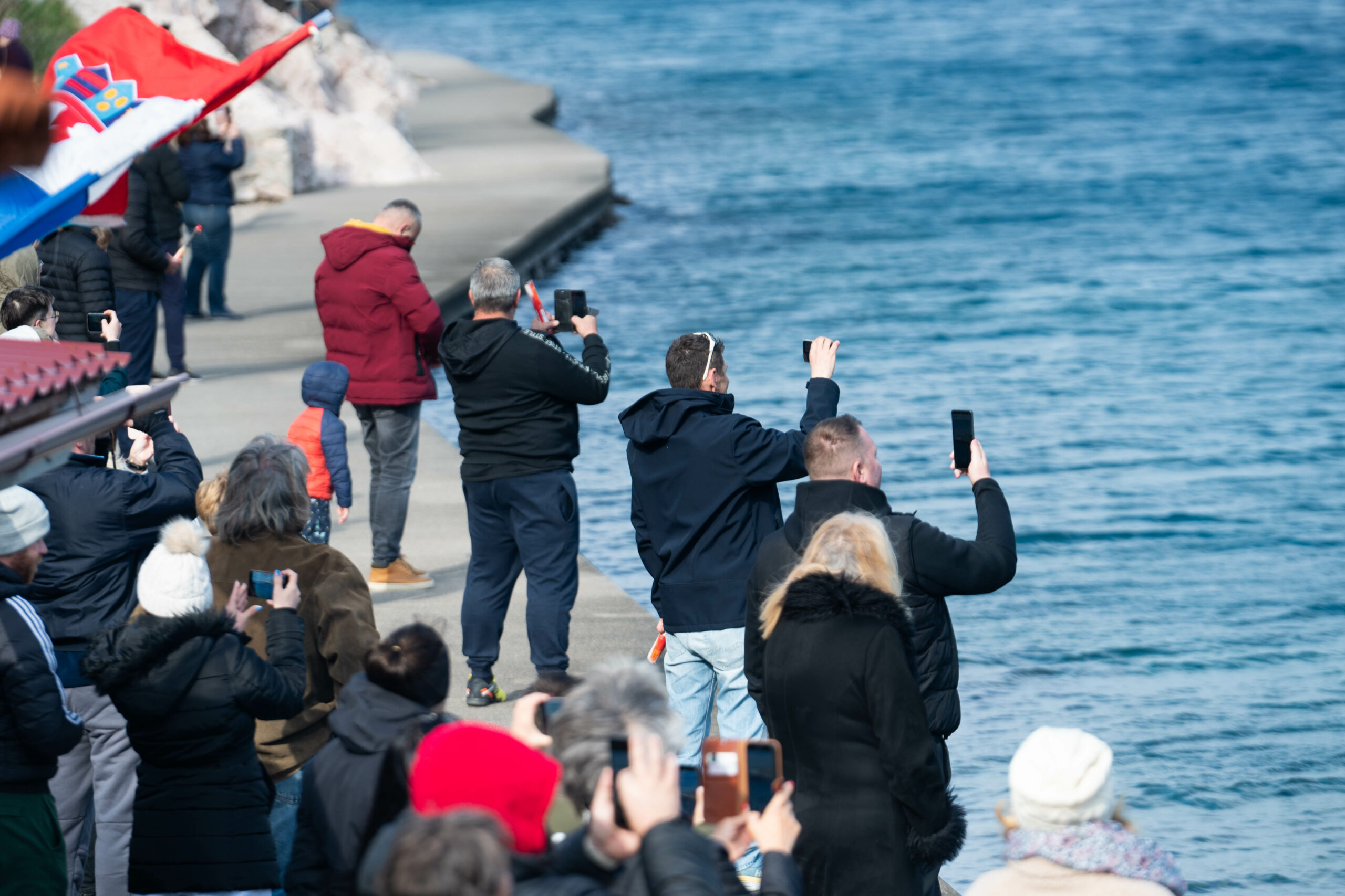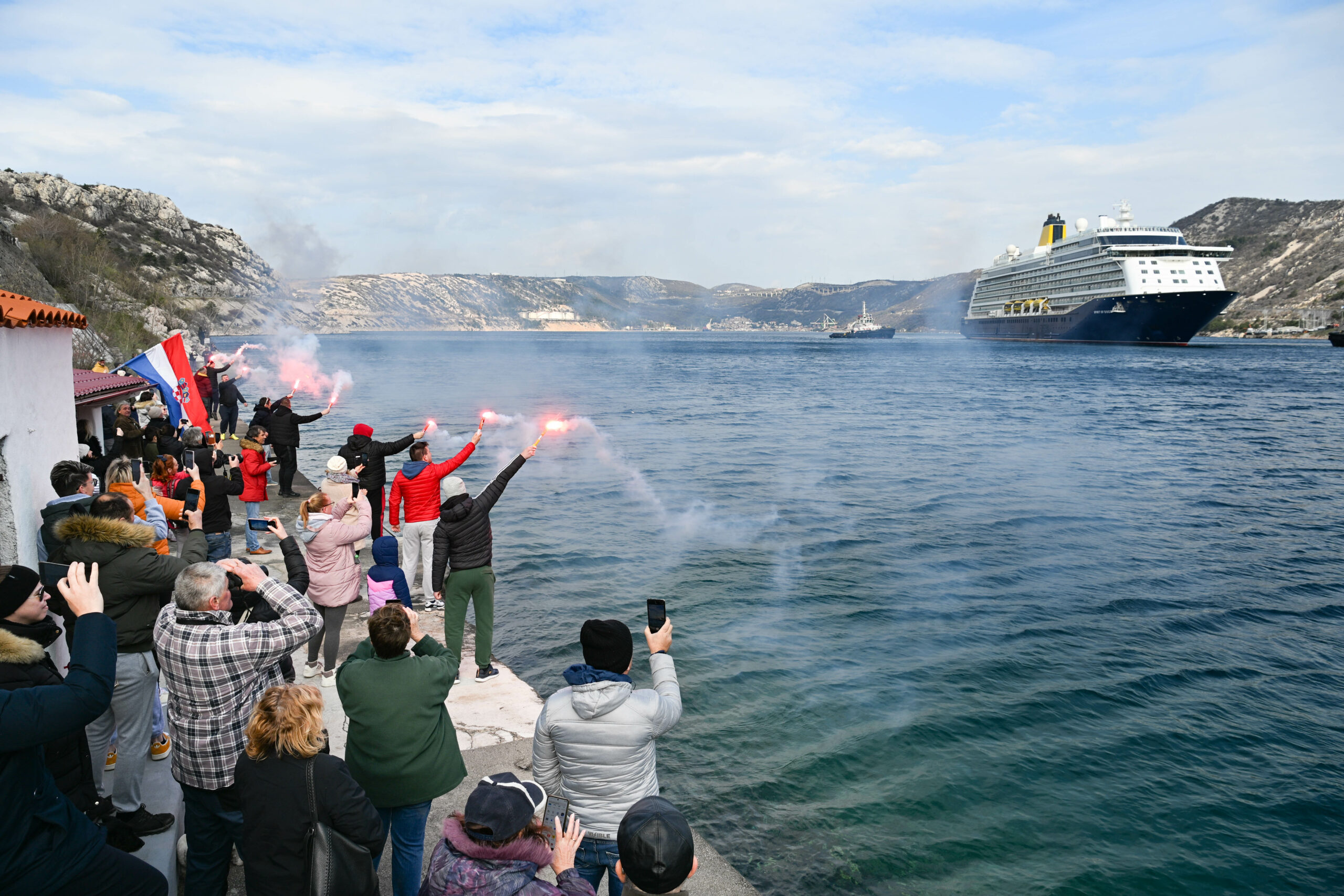 “Srce mi je kao kuća, a mogu misliti kako je našem kapetanu. Ovo se događa sada i nikada više. Povjesni je ovo trenutak za naš Bakarac, cijelu Primorsko-goransku županiju, pa i Hrvatsku”, samo su neki od komentara koji su se mogli čuti od promrzlih, ali prije svega nadasve ponosnih Bakarčana. Neki od njih ponijeli su sa sobom dalekozore, pa su iz još bliže perspektive mogli vidjeti brod, čak i svog sumještanina i kapetana Franka, koji je, kako se moglo čuti, na brodskom mostu pozdravljao okupljene. Na brodskom mostu zavijorila se i hrvatska zastava.