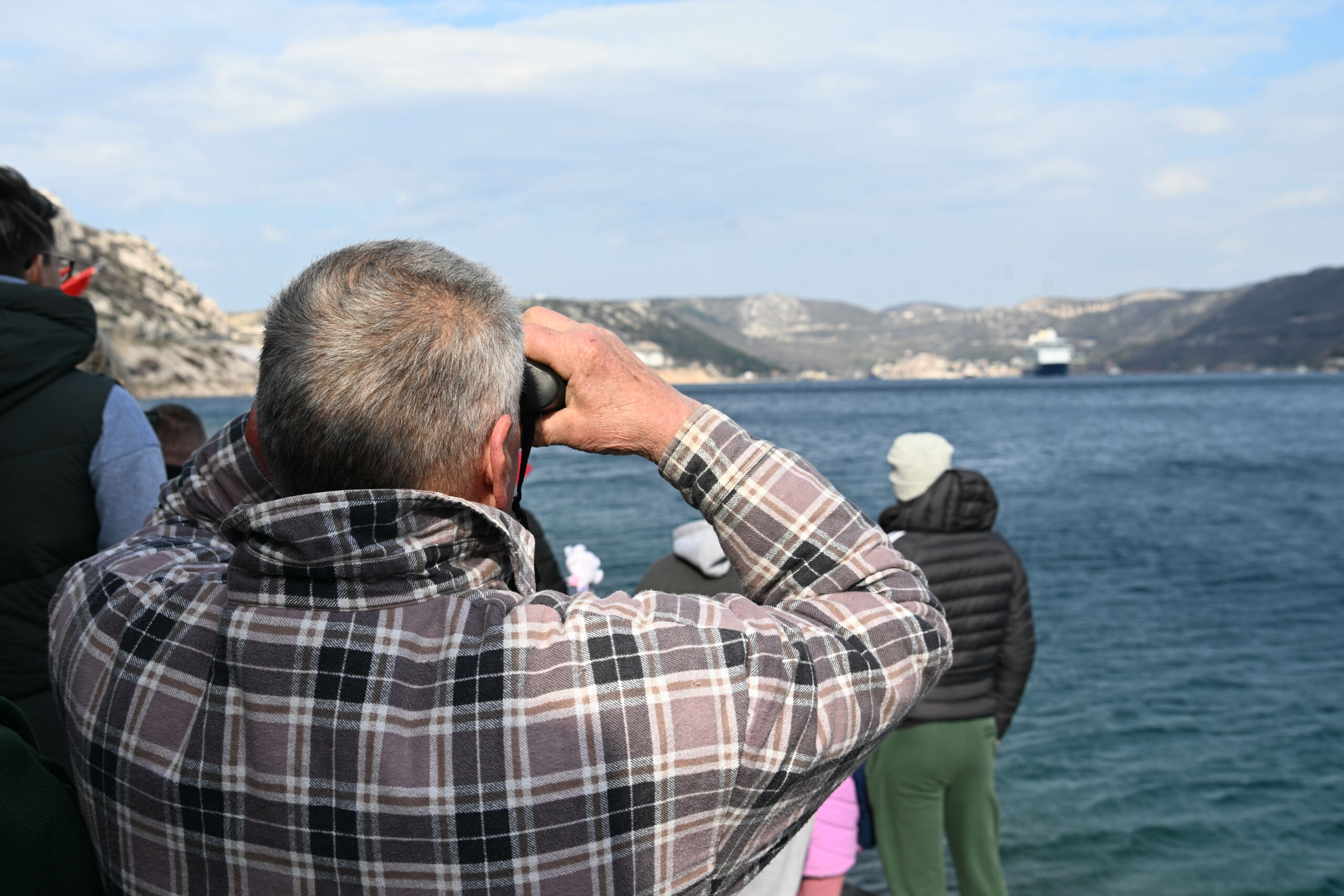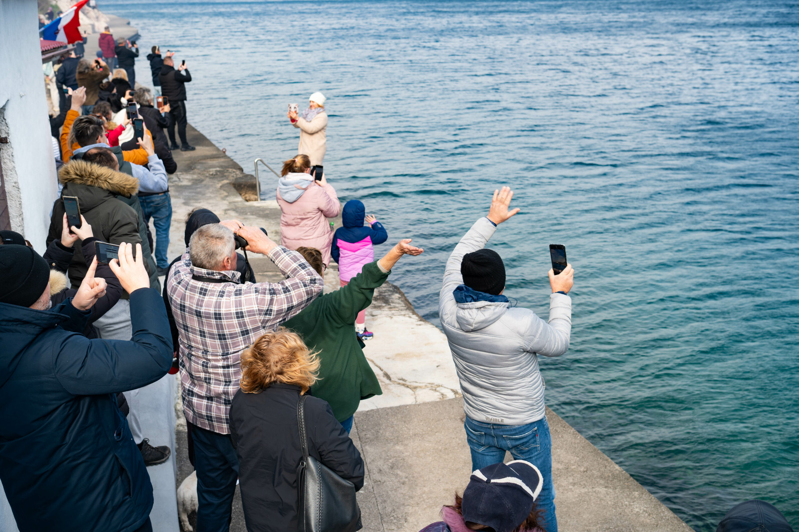 Unatoč hladnom i vjetrovitom jutru, buri koja je nemilosrdno puhala, brojni su Bakarčani došli pozdraviti svoga kapetana - od njegovih školskih kolega, pomoraca s kojima je nekada zajedno navigao, umirovljenika, ribara, pomoraca, do obitelji s djecom