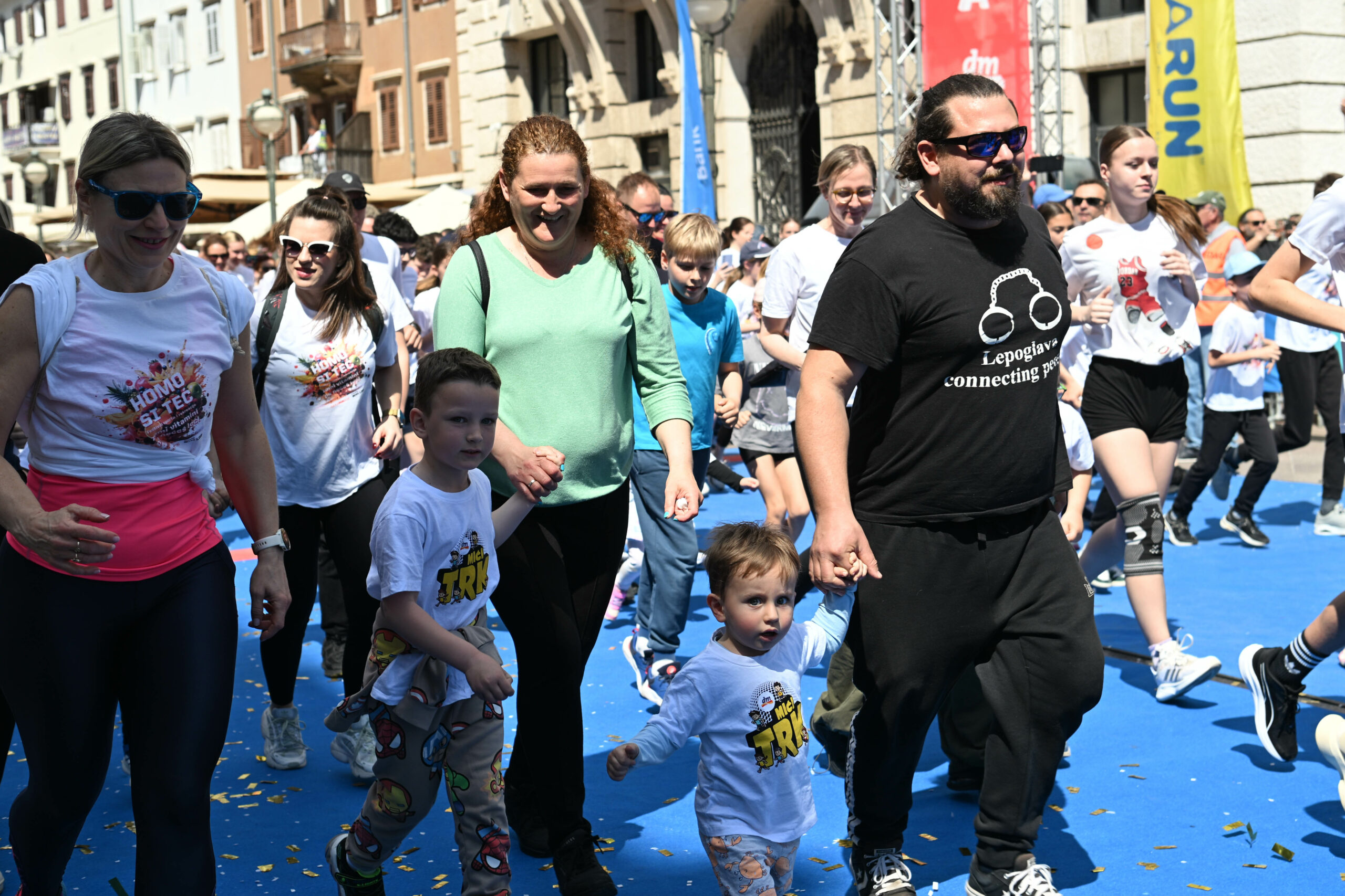 Nakon što je odrađena trka Memorijal Milke Milinković, stiglo je vrijeme za mališane i njihove roditelje i odgojitelje, kojih je svake godine sve više. Kada je uz velike osmijehe krenulo trčati more nožica, činilo se da se Korzo nikad neće isprazniti, ali trasa se na vrijeme rasčistila za ono što su svi čekali – u 12:15 sati krenula je svima omiljena utrka! Homo si teć dugačka je 1,35 kilometara i okružuje centar grada, a vidjeti nasmijana lica rekreativaca ovu utrku čini jednim od najljepših događanja u Rijeci.