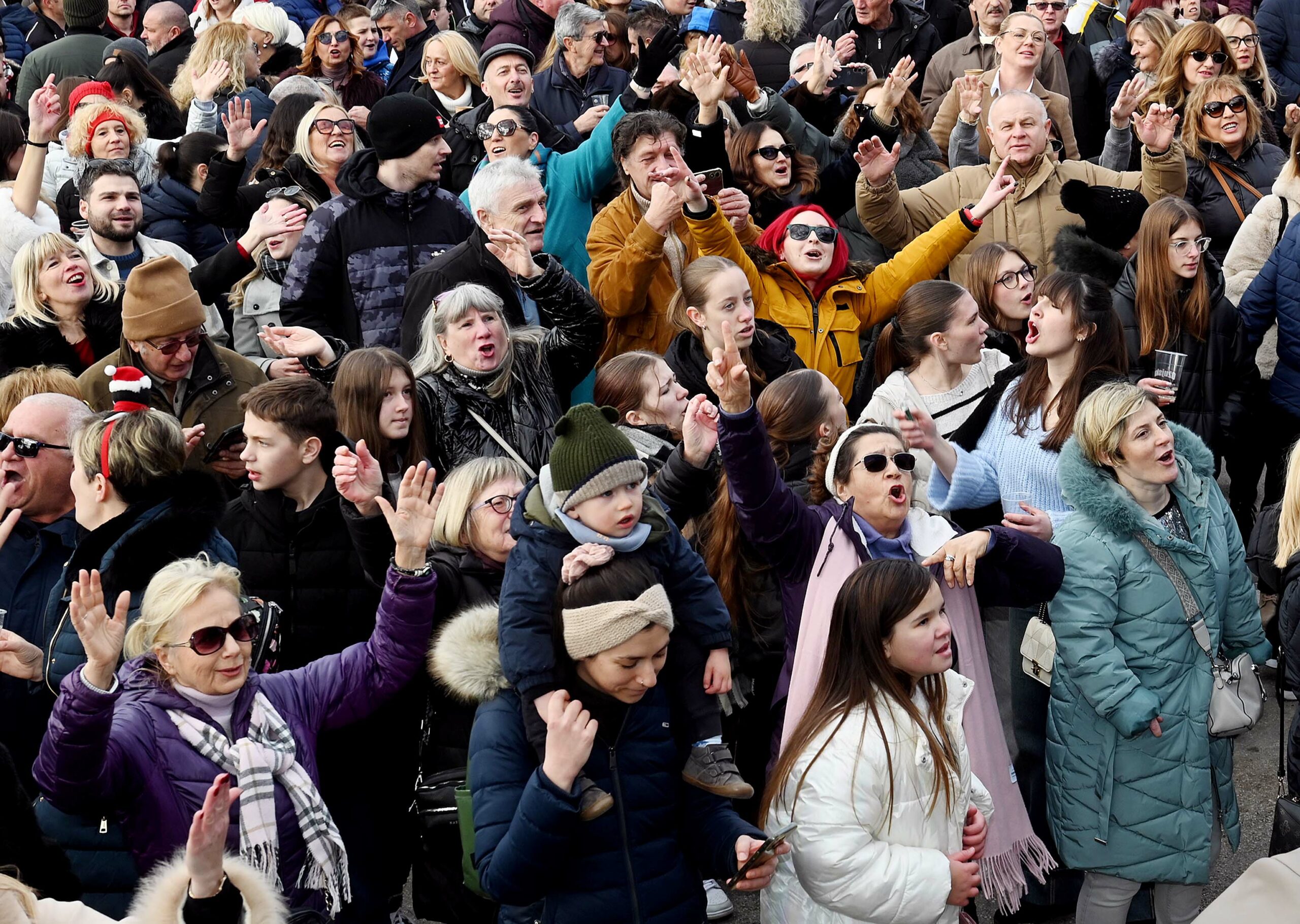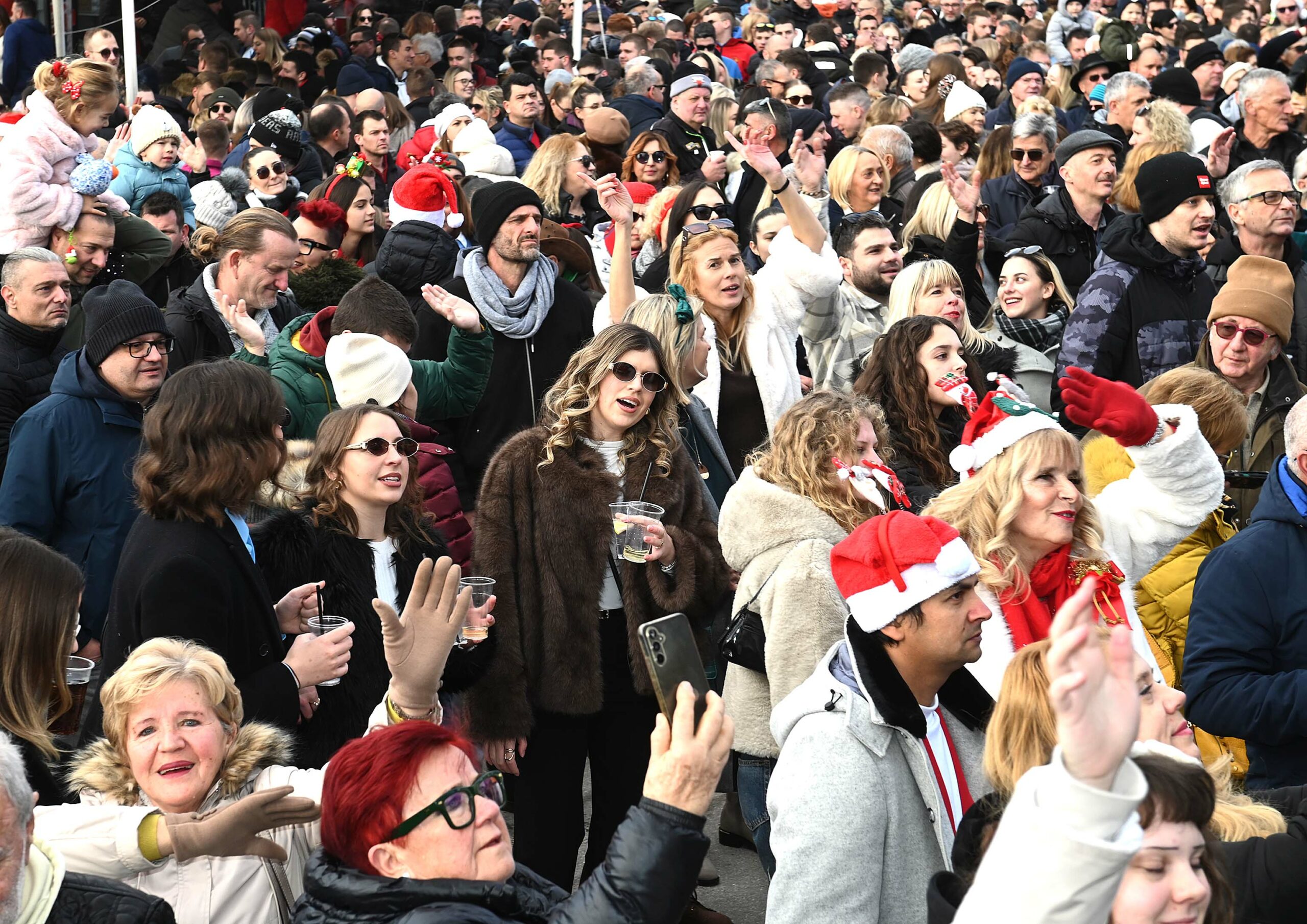 – Neka zaboravimo sve loše iz prošle godine i sve najbolje u novoj. Ovoliko nasmijanih lica, od najmlađih u do onih najstarijih, dokaz je da nam je svima potrebno upravo ovo, poručio je s Mostarac s pozornice, zatim se s bocom pjenušca uputio i podijelio domaći kastavski pjenušac gostima koji su se našli ispod pozornice.