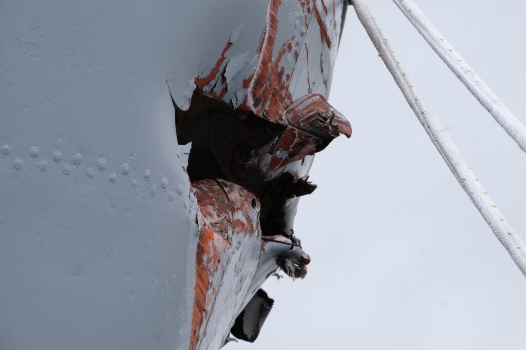 Oštećenje nije veliko, ali samo naizgled se čini da bi se moglo odraditi i na vezu, pa će se sanacija rupe na pramcu ipak morati odraditi u brodogradilištu.