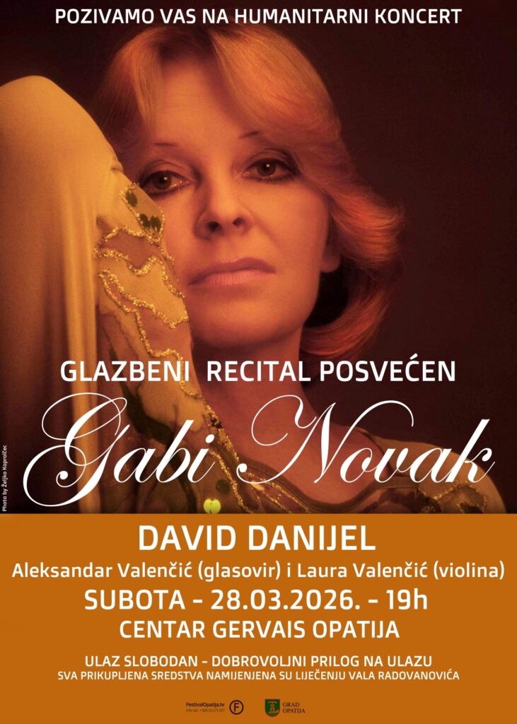U subotu, 28. ožujka s početkom u 19 sati u centru Gervais u Opatiji održat će se koncert posvećen legendarnoj pjevačici Gabi Novak. Program je dio glazbenih projekata opatijskog pjevača Davida Danijela koji već godinama kroz tematske koncerte oživljava bezvremensku glazbu domaće scene koja je obilježila generacije.