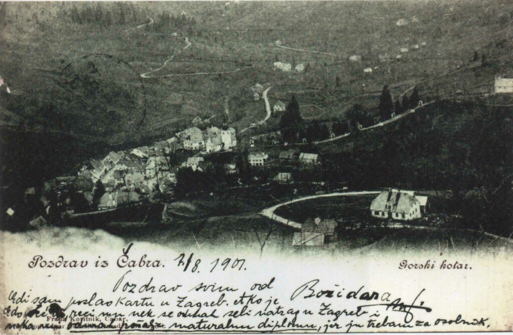 U čabarskom kraju razglednice se pojavljuju nakon 1895. godine, a najstarije poznate primjerke krase poštanski žigovi iz 1898. godine. Važni pioniri njihova izdavanja bili su poštar Franjo Koritnik i fotograf Dragutin Žagar. Tijekom tzv. »zlatnog doba razglednice« (1898. – 1915.) čabarski kraj dosegnuo je visoku razinu estetske i tehničke kvalitete tiska. Između dva svjetska rata lokalni trgovci i ugostitelji nastavili su tradiciju izdavanja, dok su fotografi i manji nakladnici bilježili prirodne ljepote i život ovog kraja. Zahvaljujući njihovu radu, danas posjedujemo vrijedne vizualne dokumente koji svjedoče o povijesti, identitetu i kulturnom nasljeđu čabarskog kraja, piše u sažetku knjige »Pozdravi iz čabarskoga kraja« Ivana Janeša.